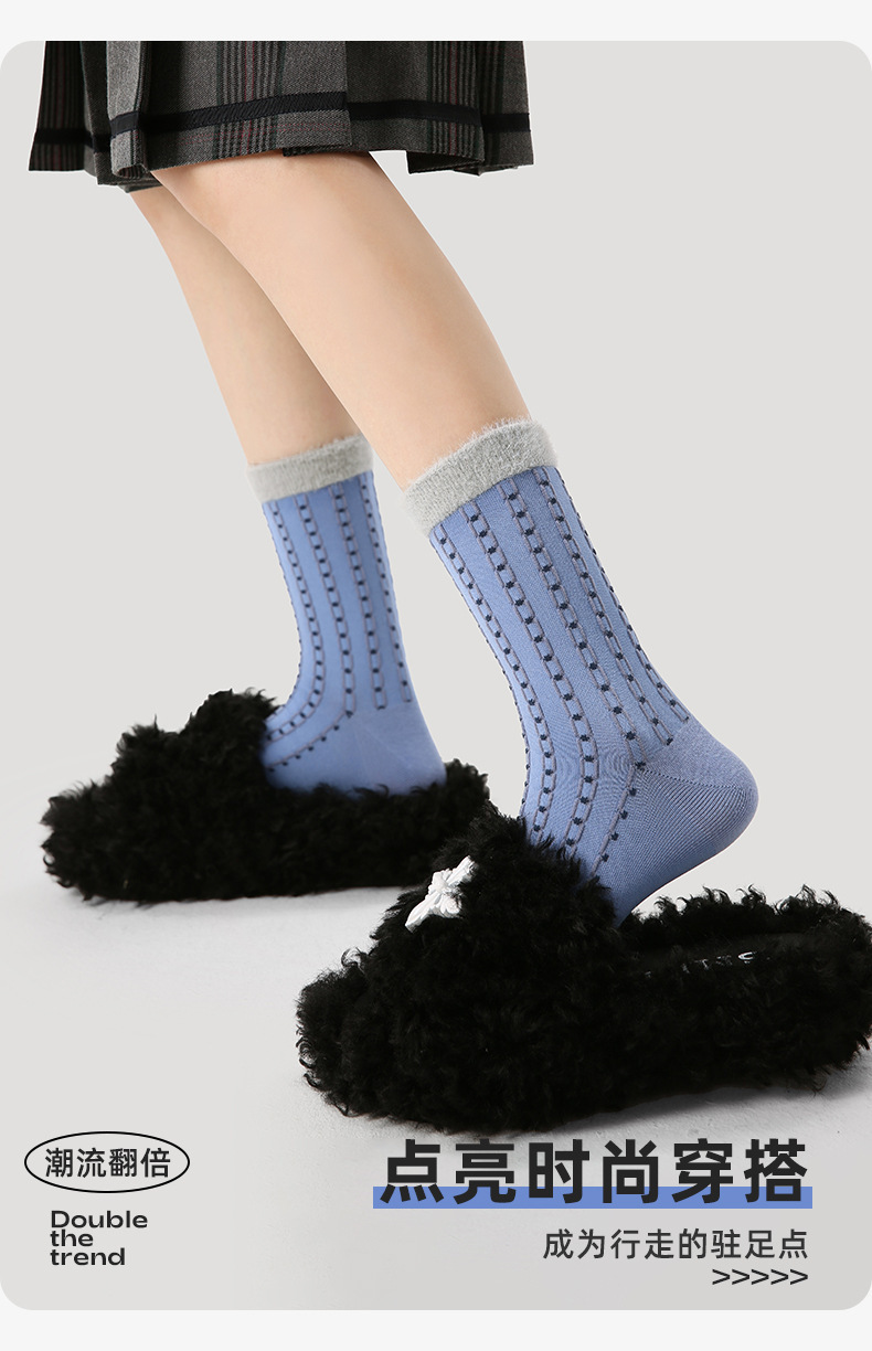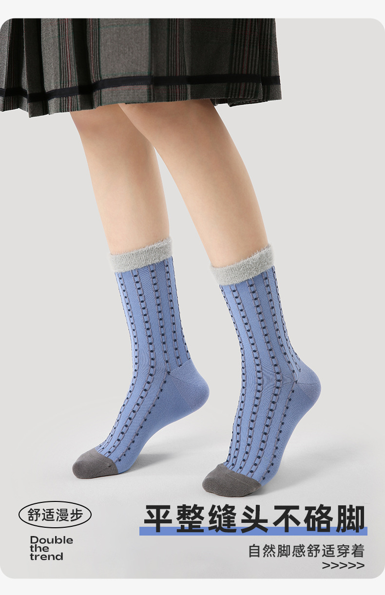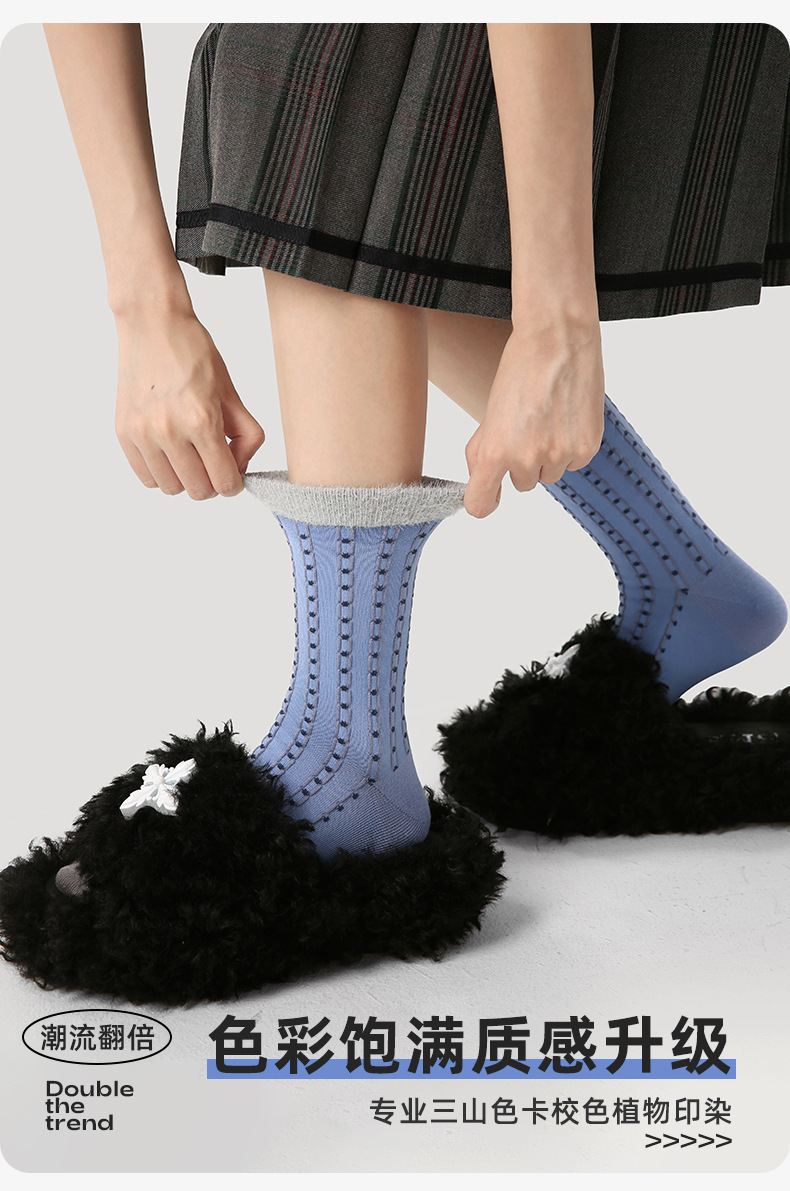 르네상스 양말 여성의 봄과 가을 짧은 튜브 스택 가짜 투피스 땀 흡수 얇은 파란색 중간 튜브 양말스토어 가기