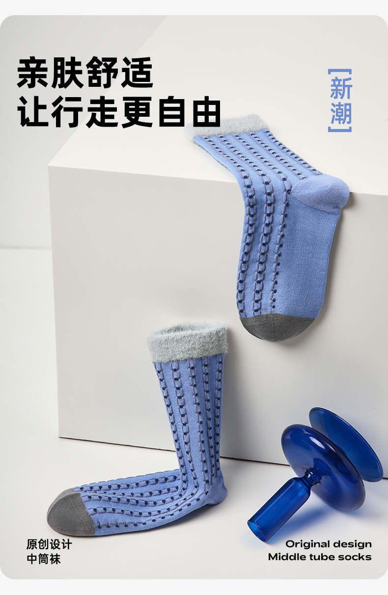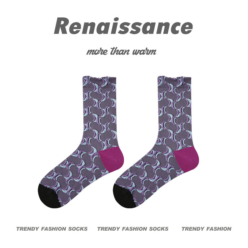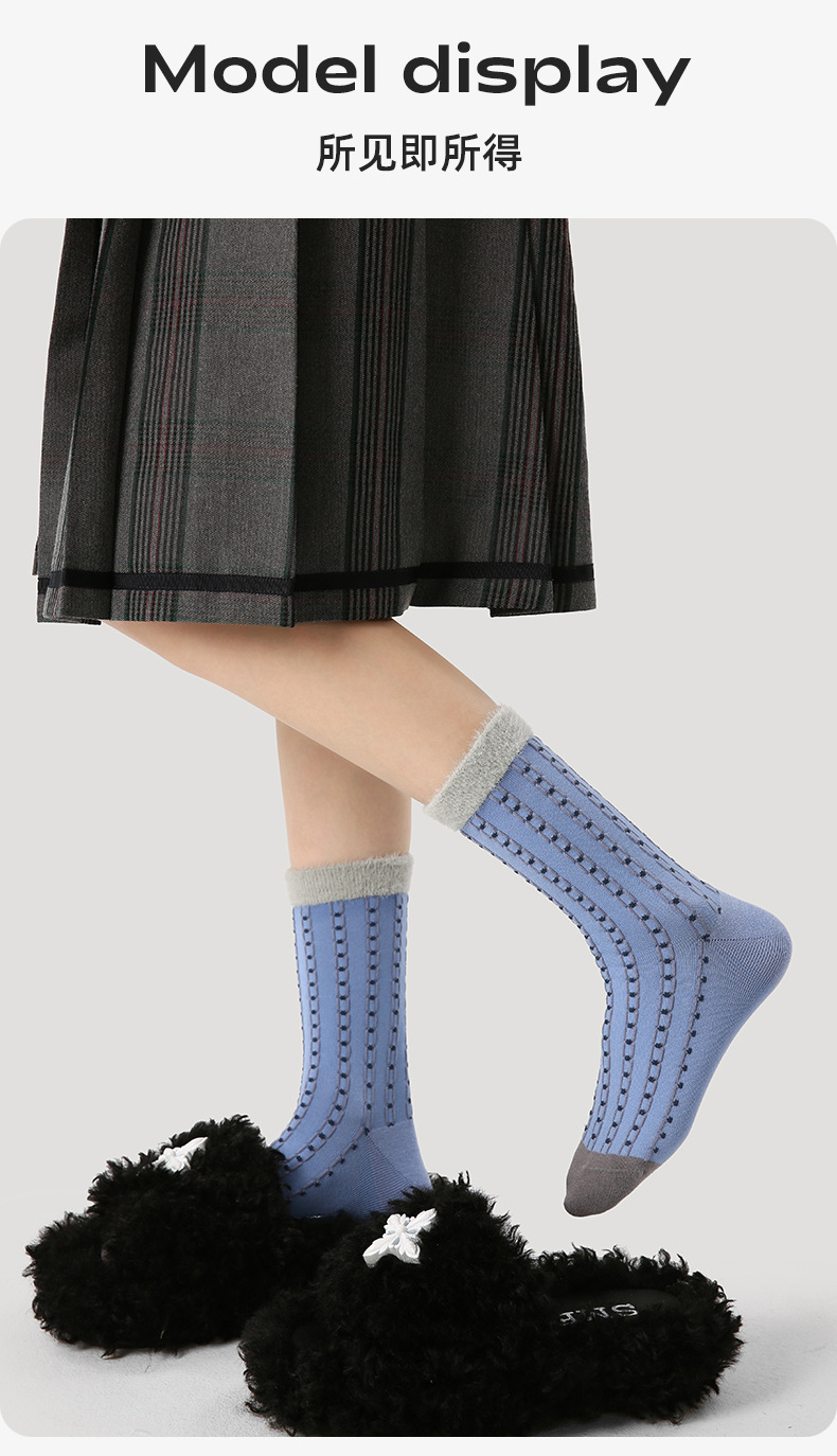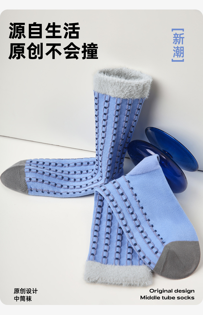 르네상스 양말 여성의 봄과 가을 짧은 튜브 스택 가짜 투피스 땀 흡수 얇은 파란색 중간 튜브 양말스토어 가기