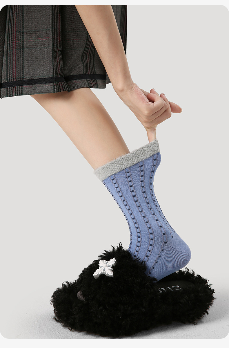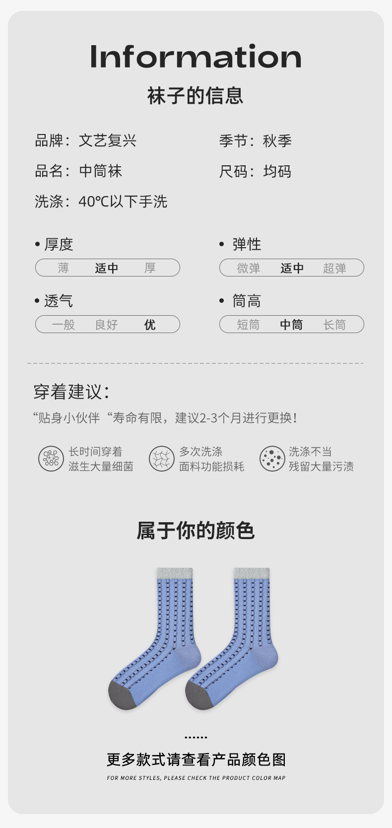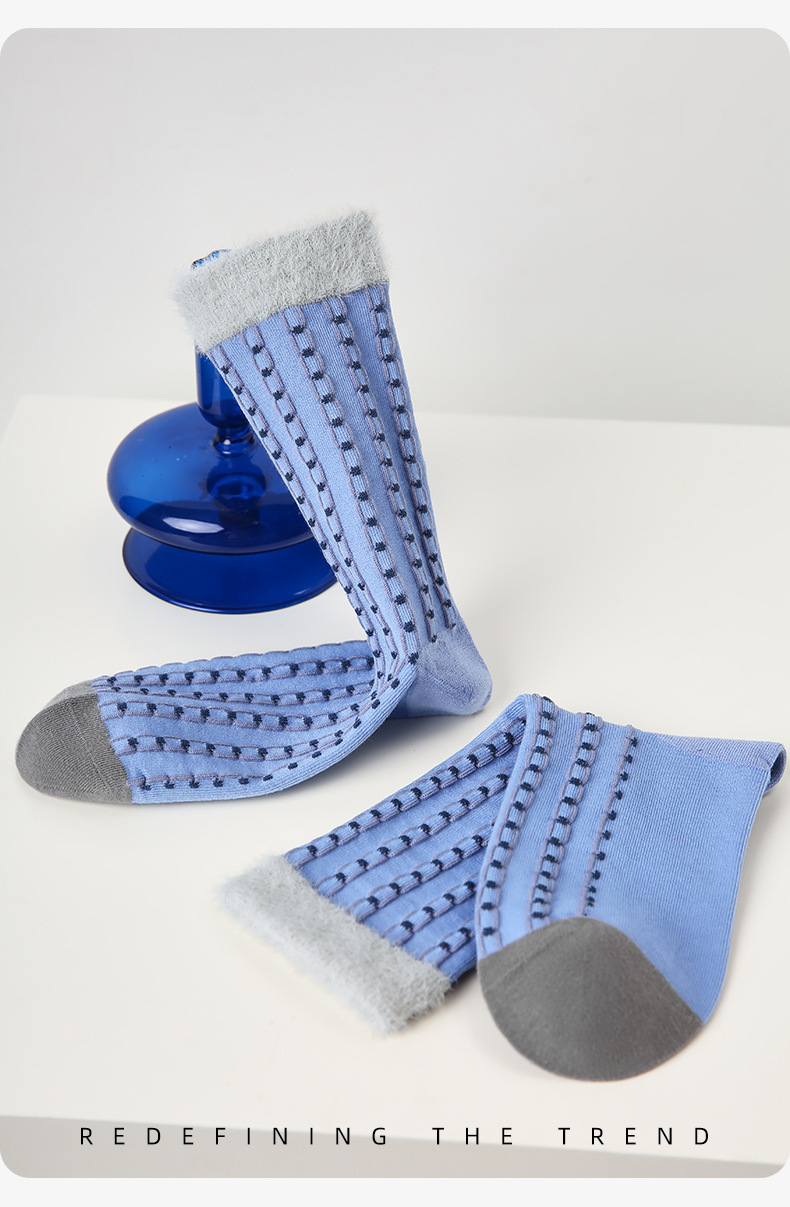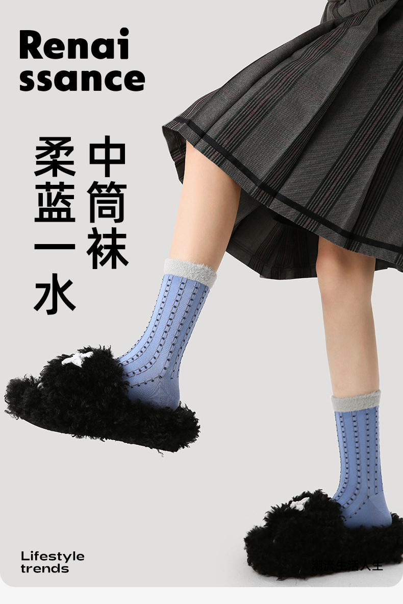 르네상스 양말 여성의 봄과 가을 짧은 튜브 스택 가짜 투피스 땀 흡수 얇은 파란색 중간 튜브 양말