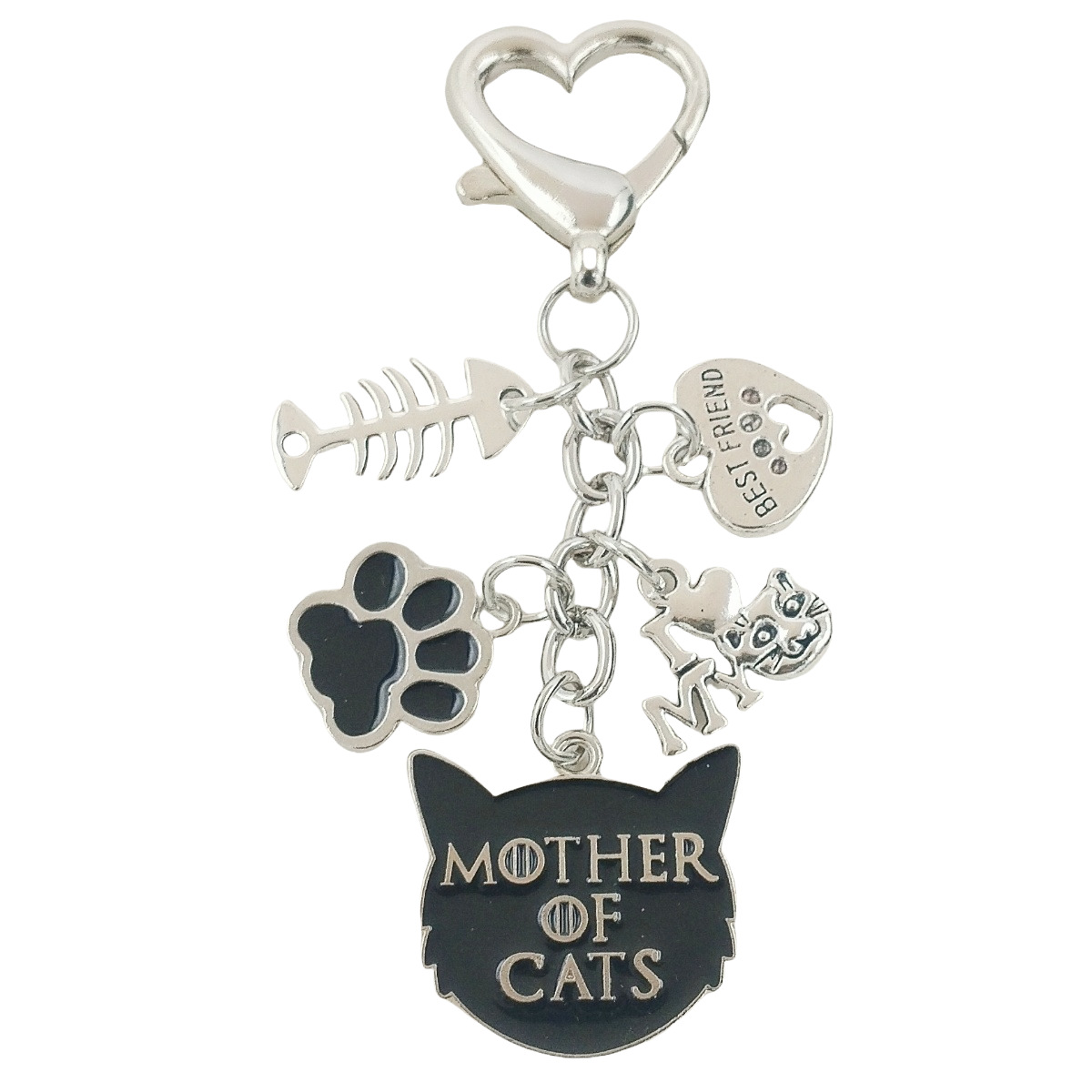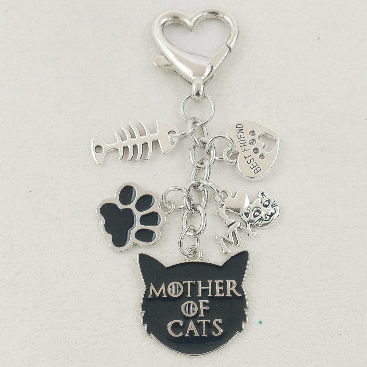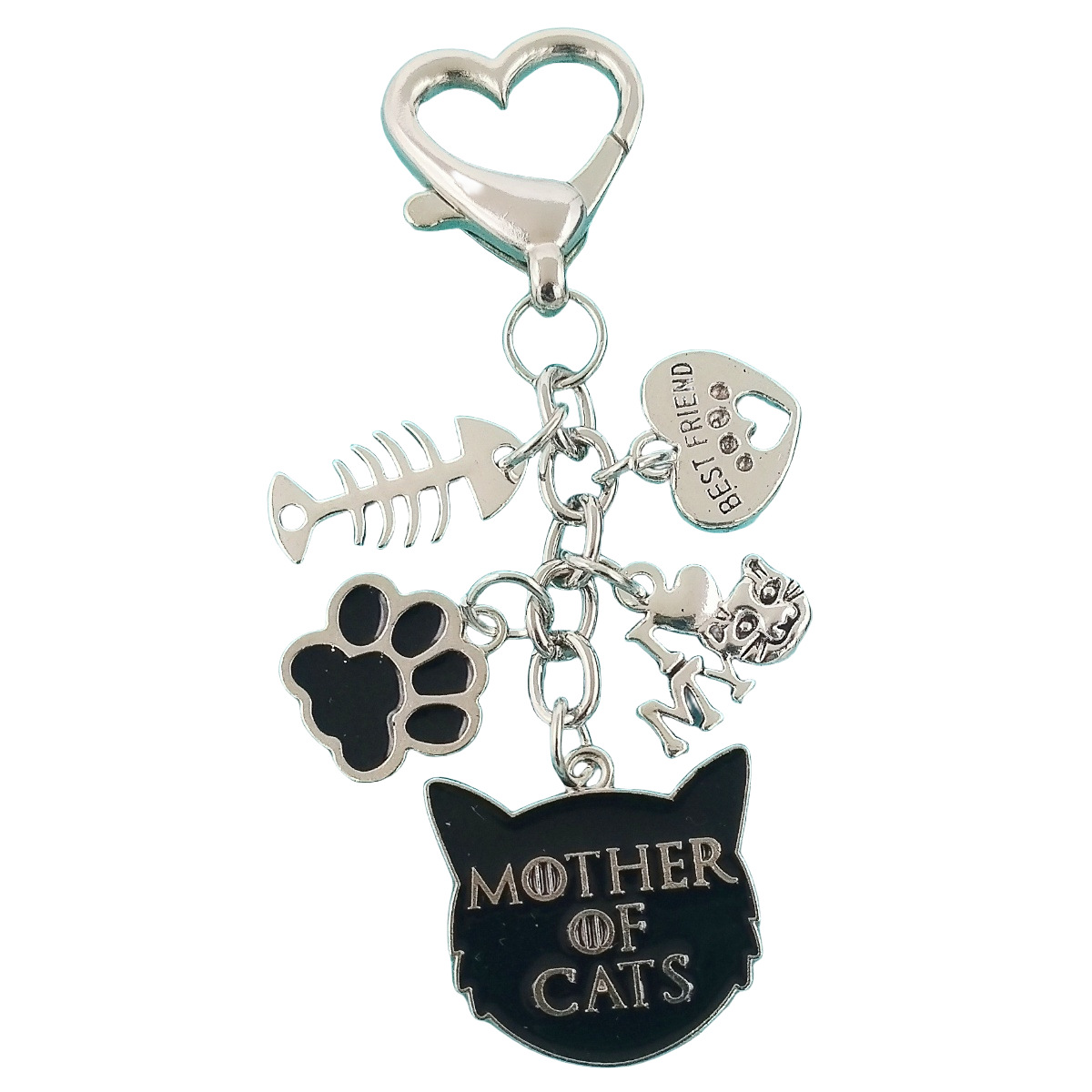 국경을 넘는 새로운 합금 오일 드립 고양이 엄마 열쇠 고리, 생선 뼈 하트 모양의 악마 고양이와 발자국 사랑 열쇠 고리