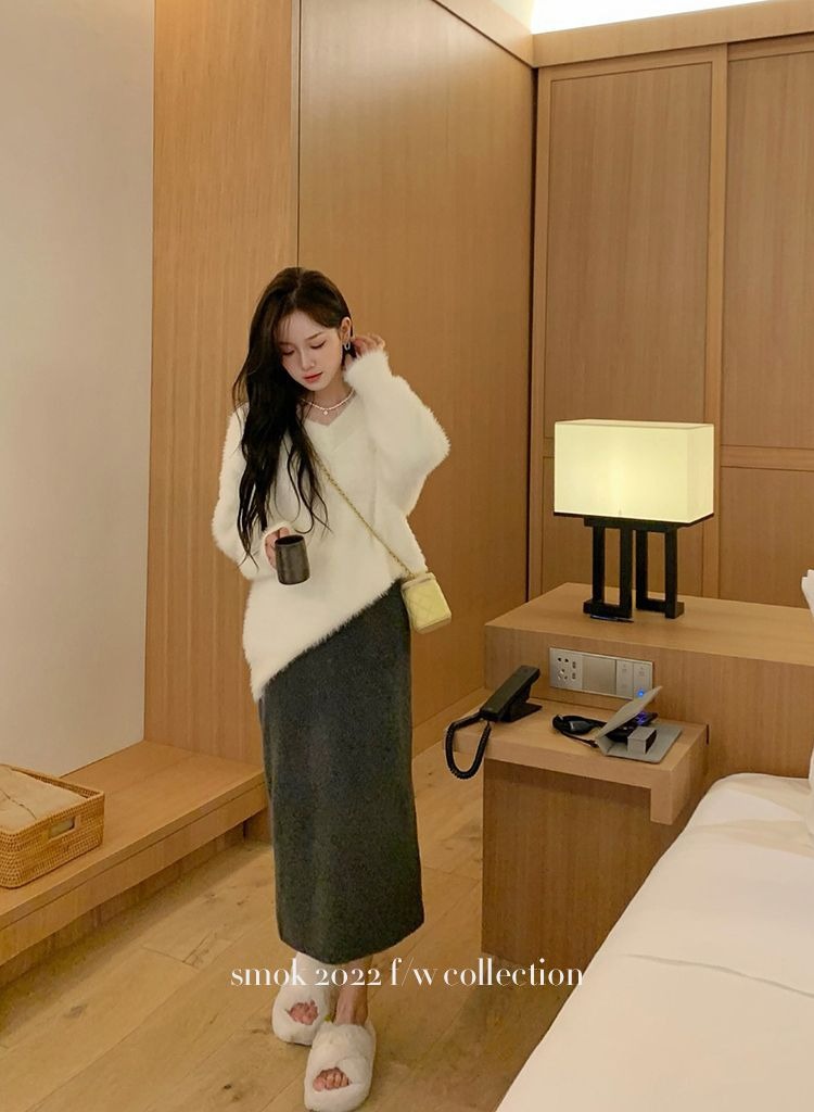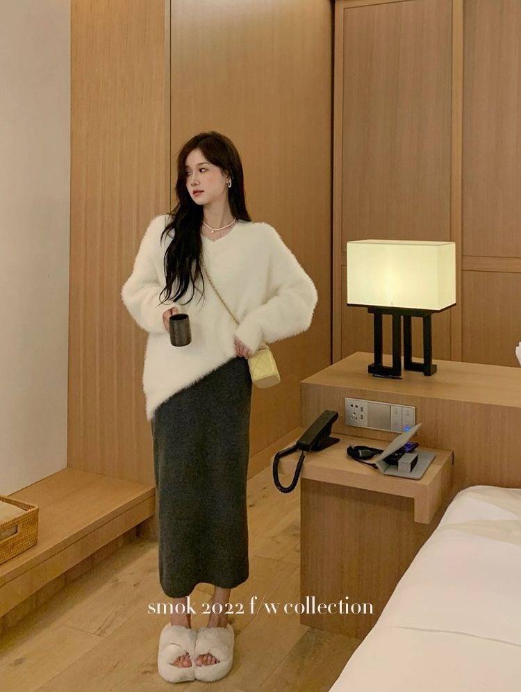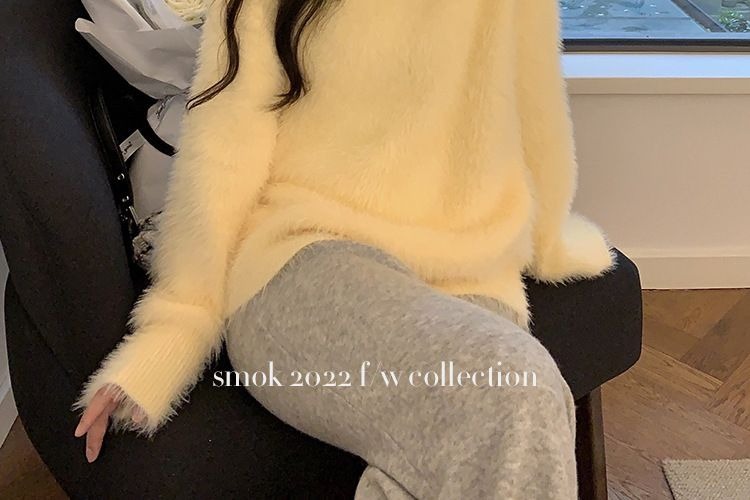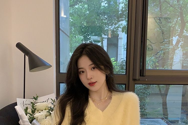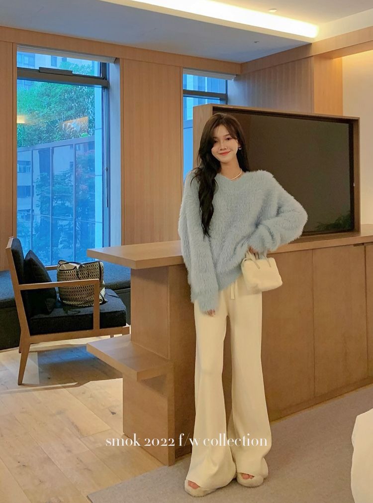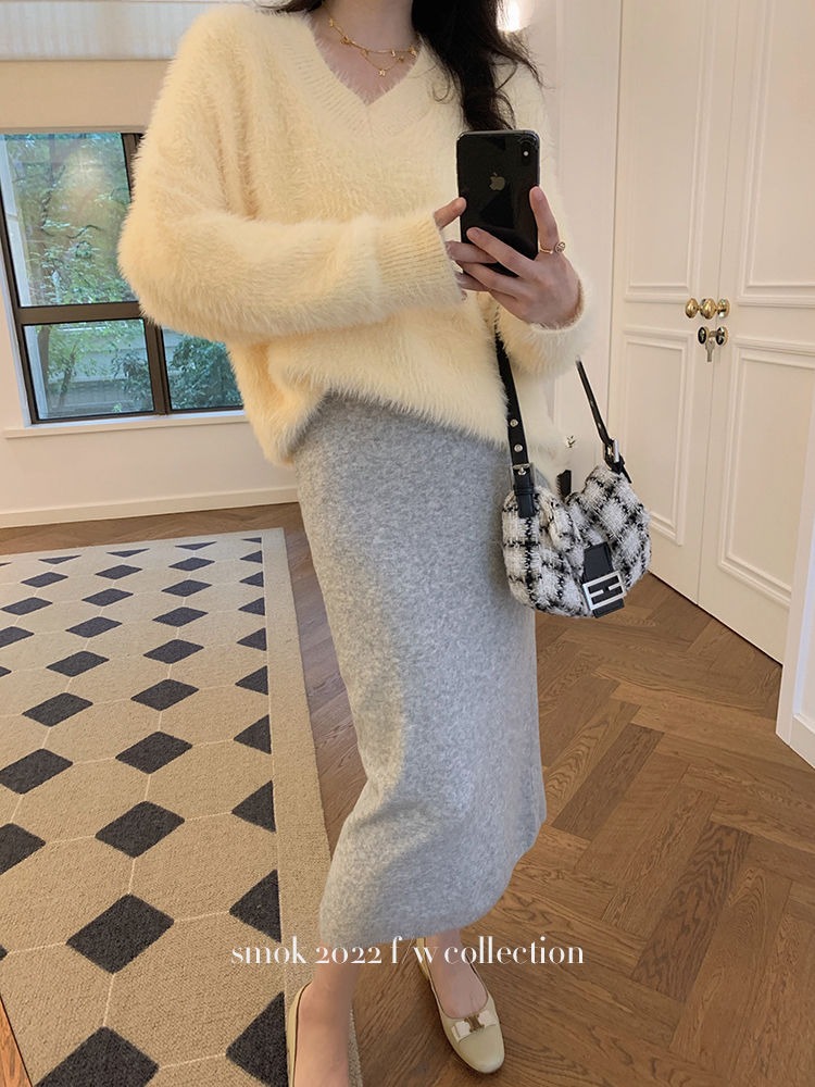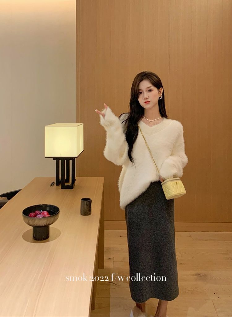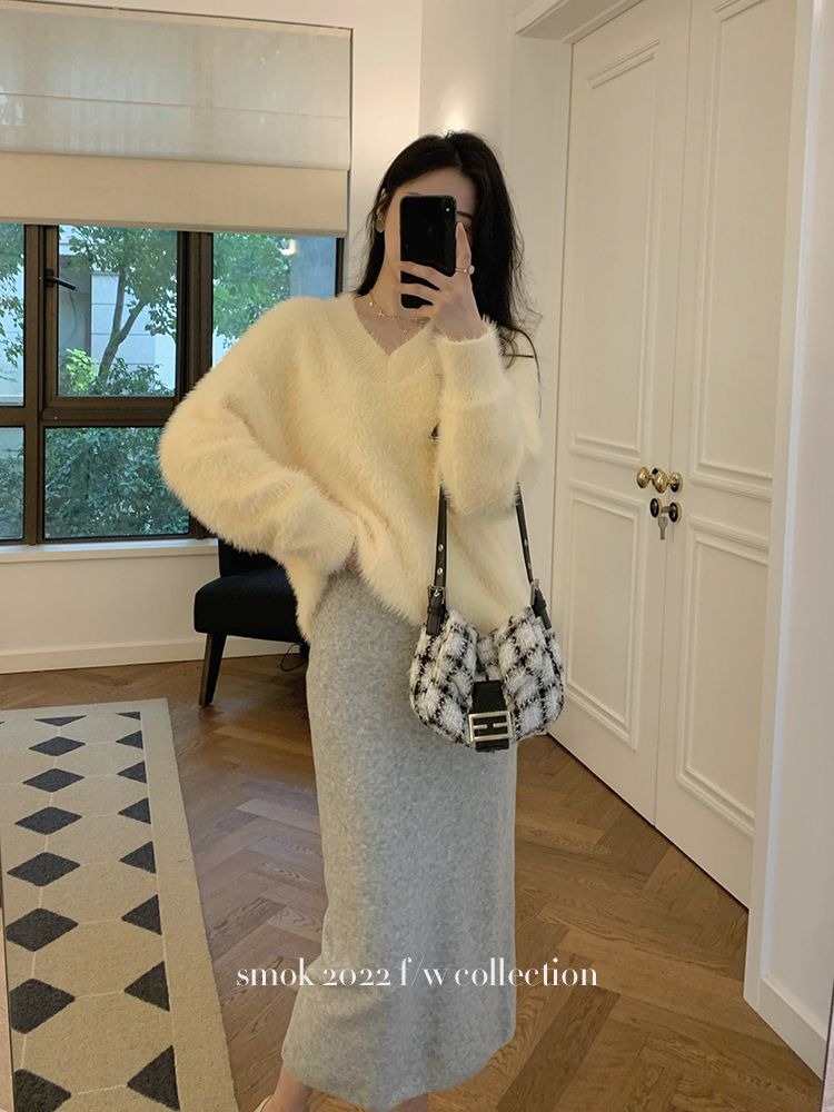 2023冬季新款超厚实v领很仙水貂绒毛衣女套头宽松慵懒风上衣潮