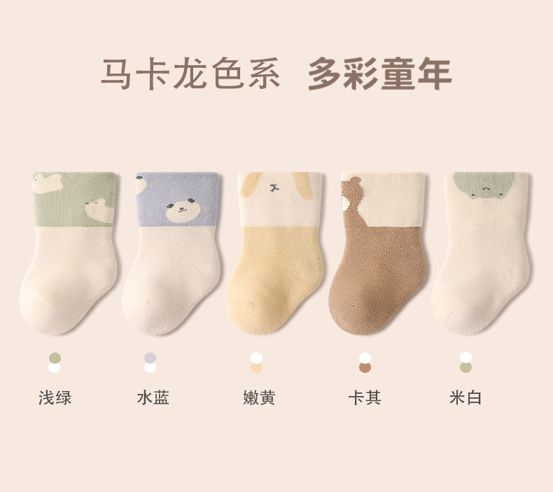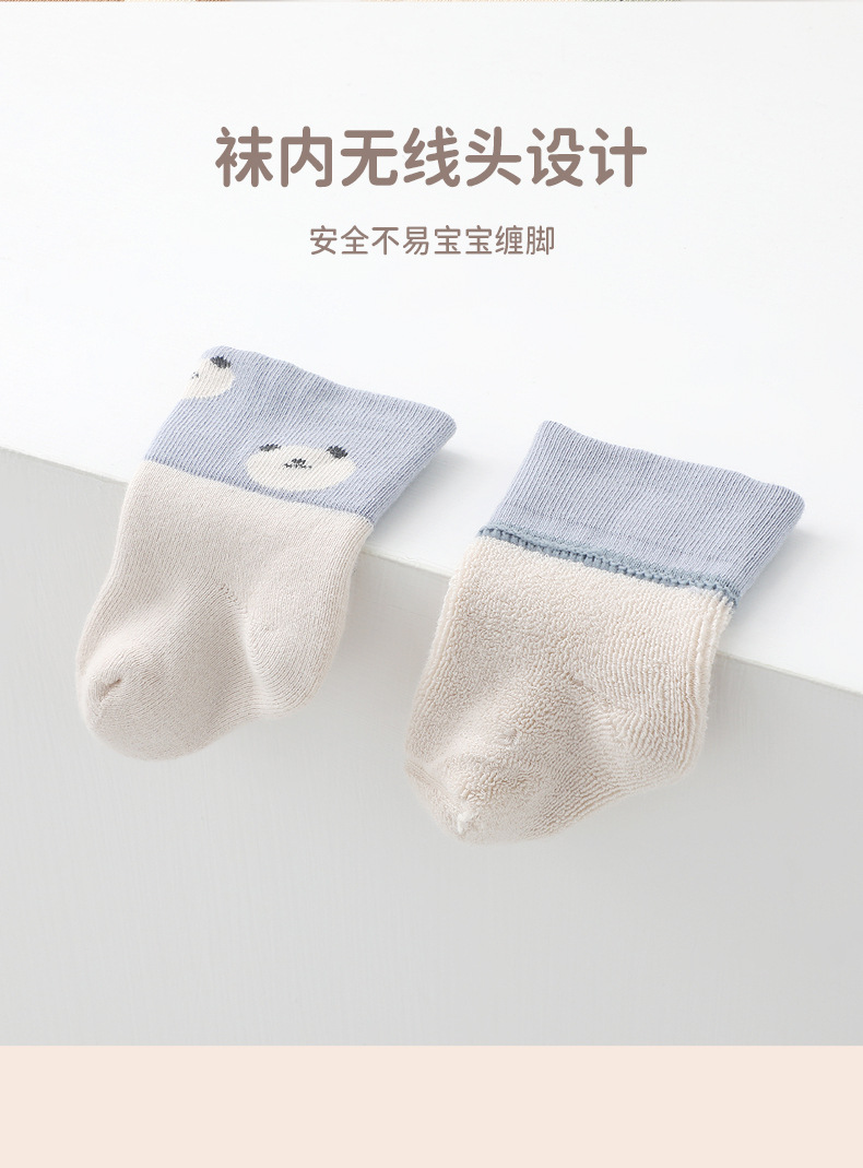 2024 겨울 신제품 두꺼운 테리 신생아 양말 뼈없는 느슨한 입 아기 만화 중간 튜브면 양말스토어 가기
