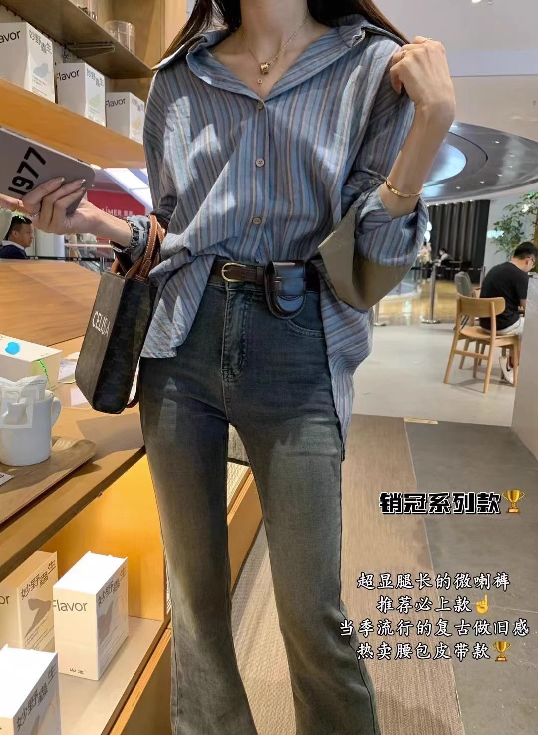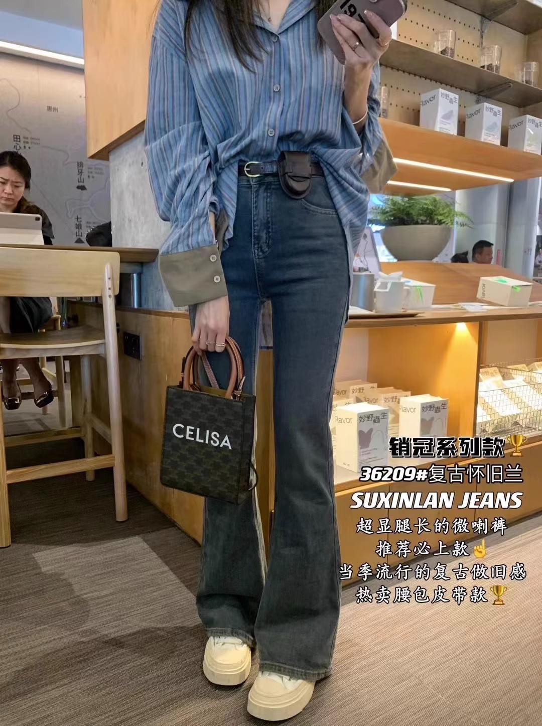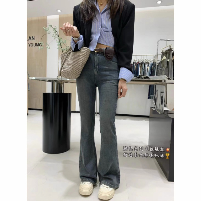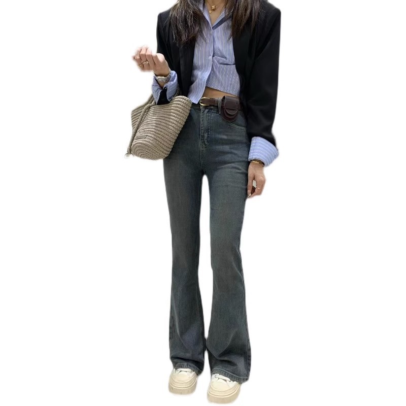 시멘트 재 마이크로 블래드 청바지 여성 가을 2024 새로운 한국식 슬림 핏 슬리밍 올 매치 플로어 머펫 팬츠스토어 가기