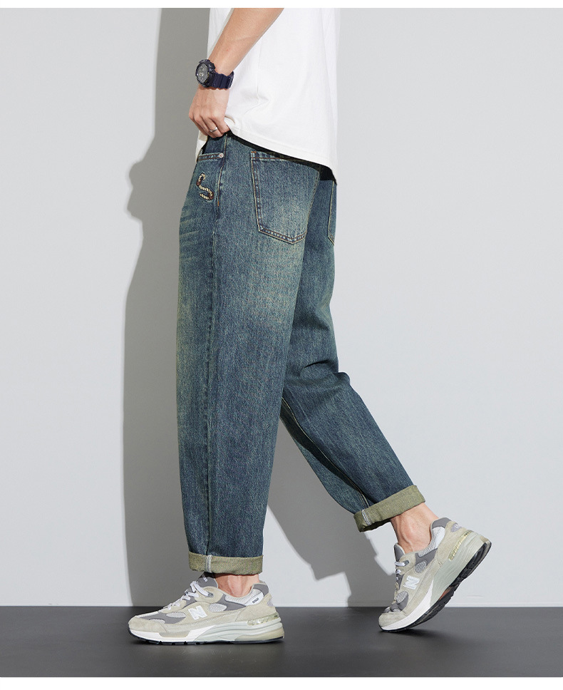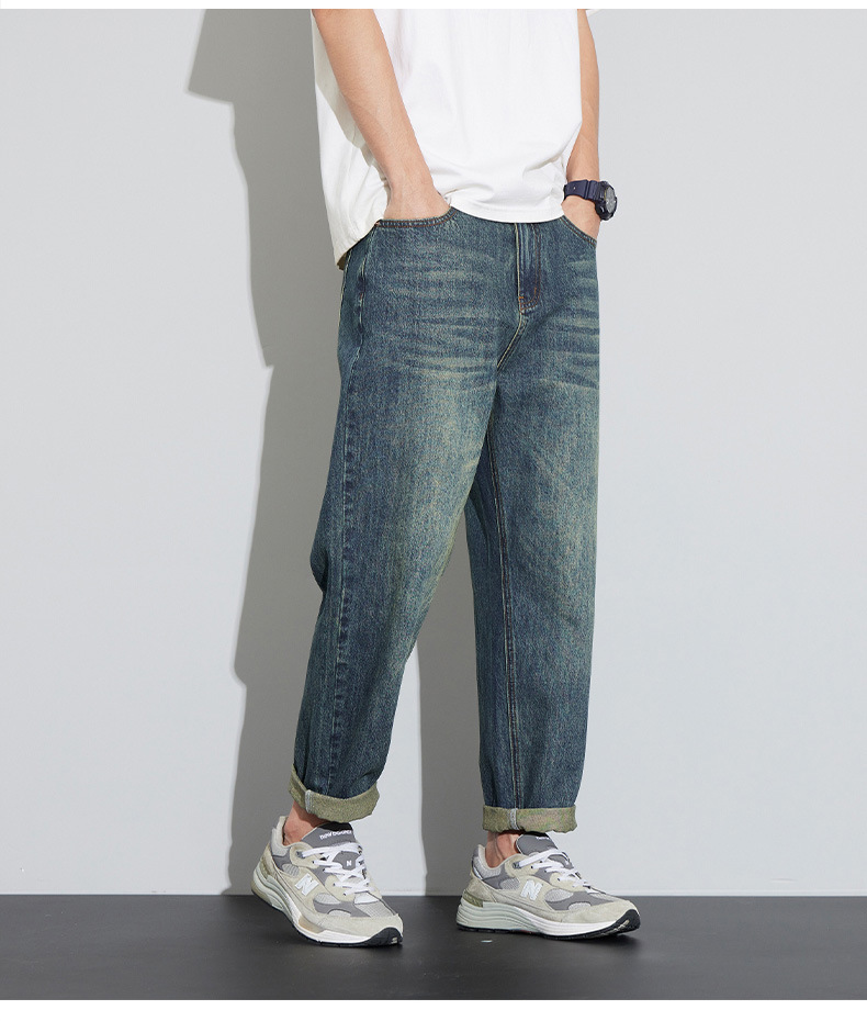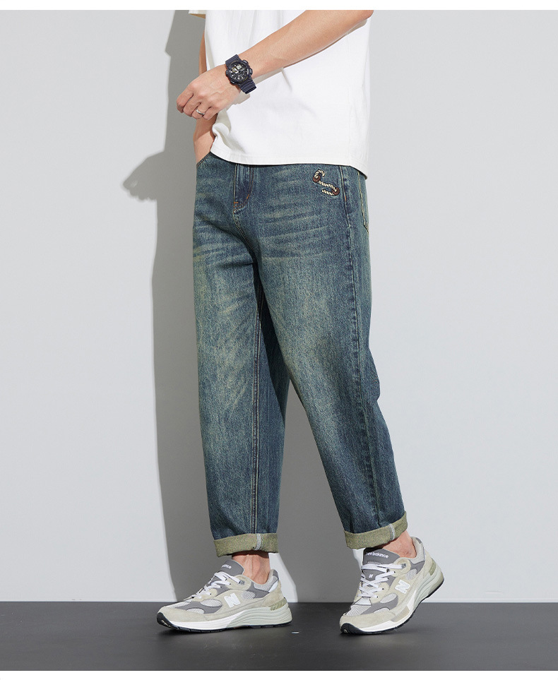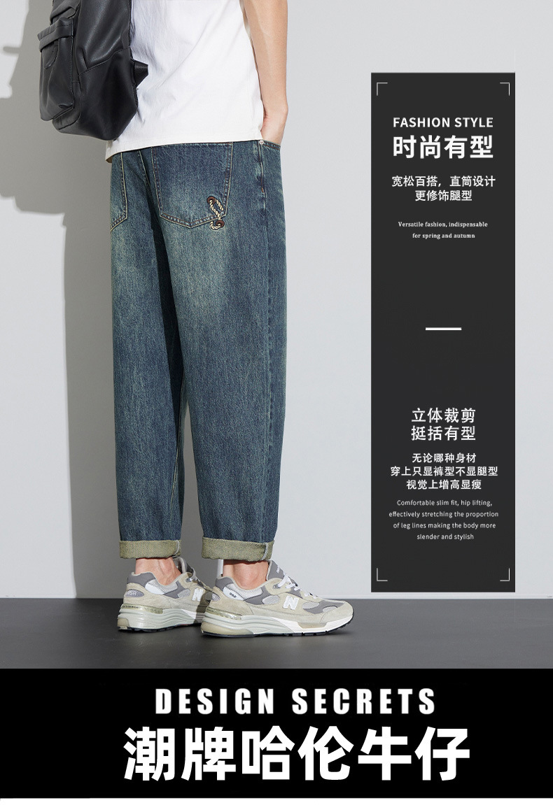 남성용 마이크로 테이퍼 스몰 스트레이트 청바지 2025 봄 여름 루즈한 남성 바지 복고풍 미국 트렌디 브랜드 소년 바지스토어 가기