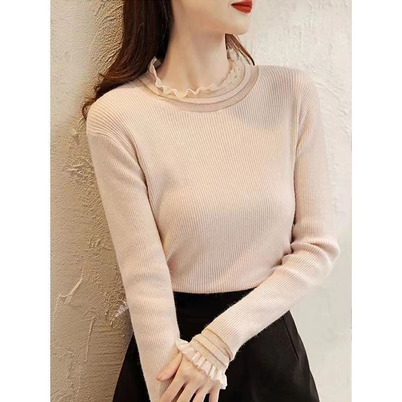 니트 스웨터 여성의 겨울 2023 새로운 한국식 블랙베이스 셔츠 여성의 나이를 줄이는 아름다운 서양식 작은 셔츠 내부 탑스토어 가기