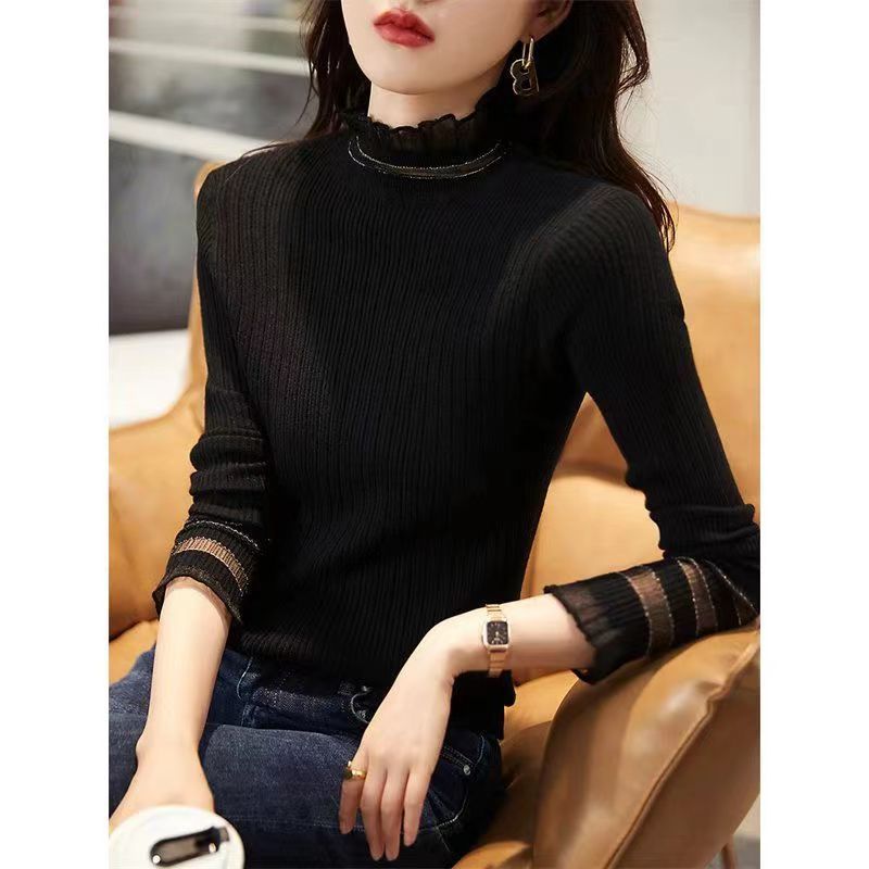 니트 스웨터 여성의 겨울 2023 새로운 한국식 블랙베이스 셔츠 여성의 나이를 줄이는 아름다운 서양식 작은 셔츠 내부 탑