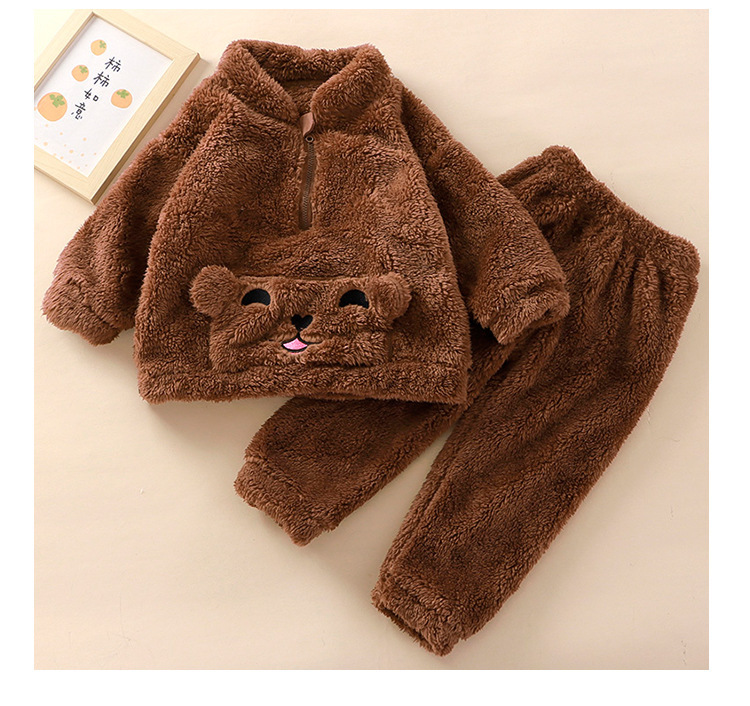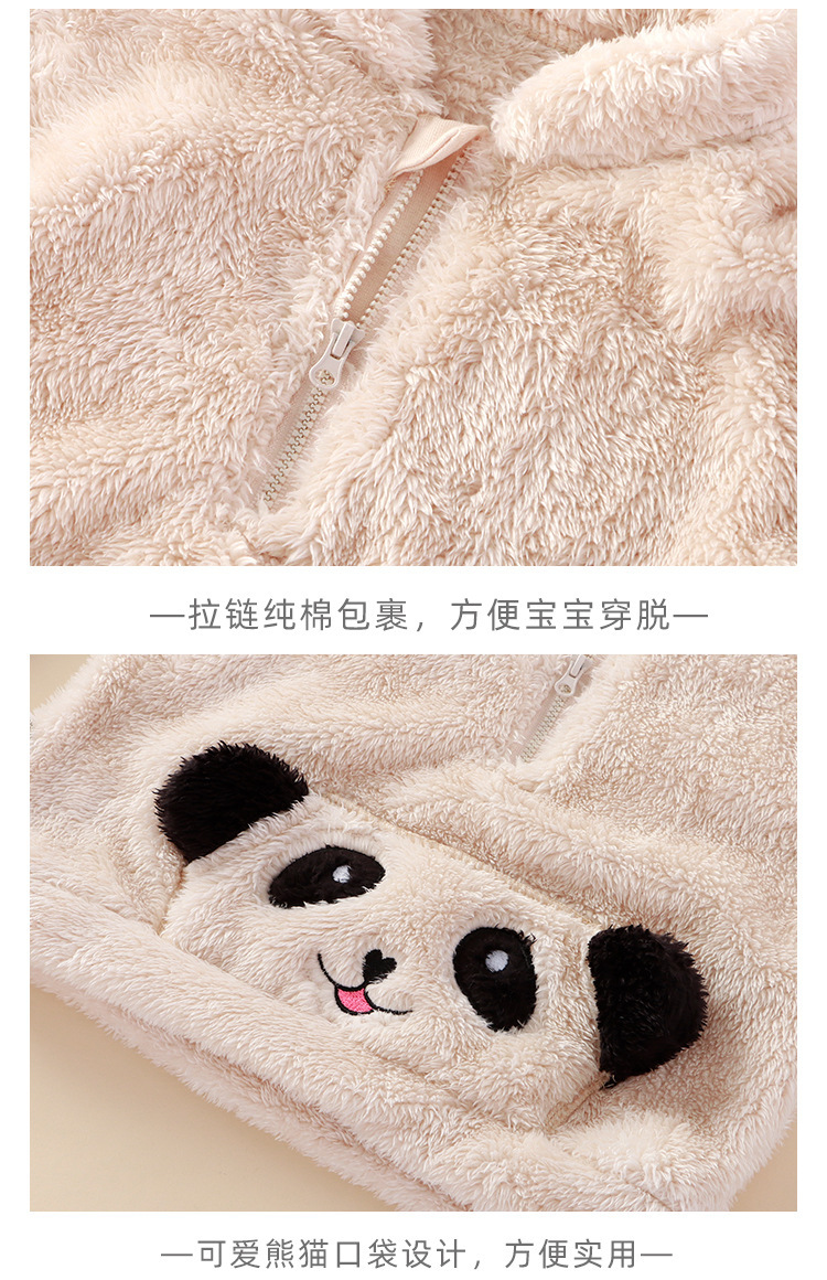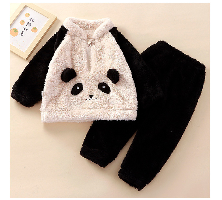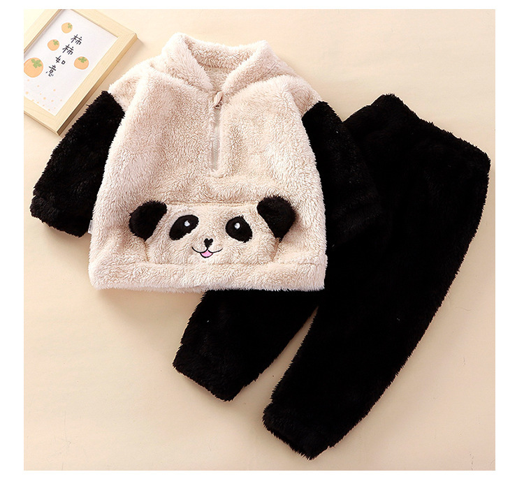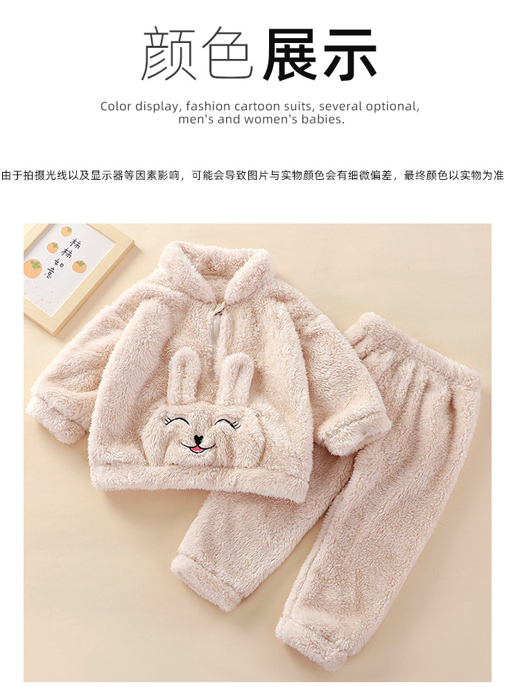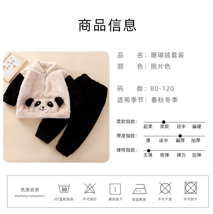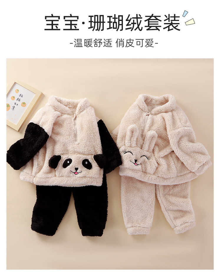 새로운 가을, 겨울 어린이 팬더 만화 따뜻한 잠옷 아기 귀여운 곰과 토끼 플란넬 가정 의류 세트