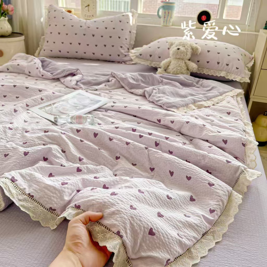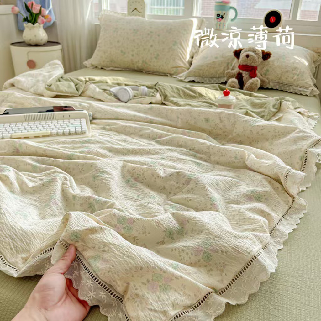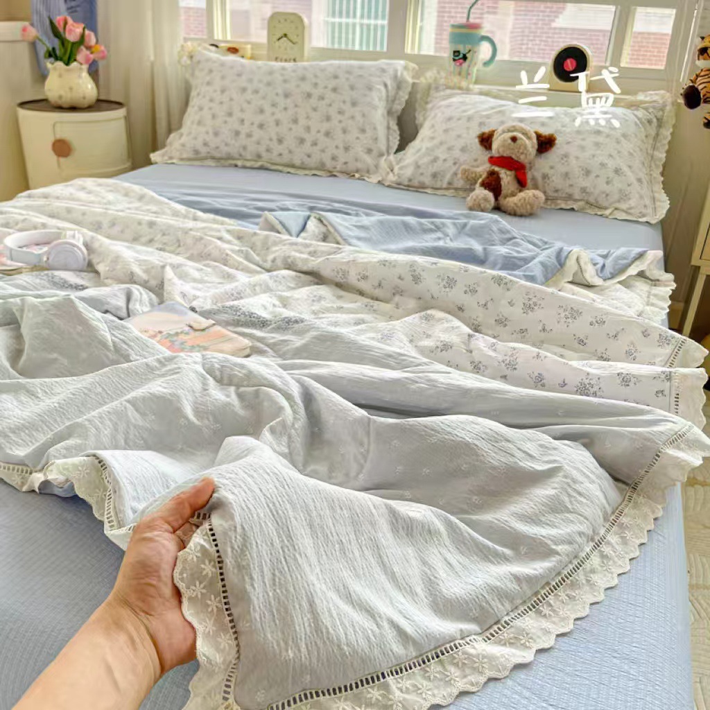 클래스 A 구름 느낌의 카톡 주름진 원사 코튼 레이스 여름 퀼트 4 피스 코튼 및 린넨 여름 퀼트 4 피스 도매 세대스토어 가기