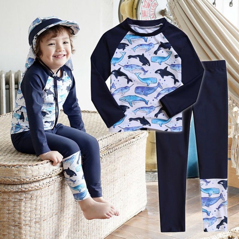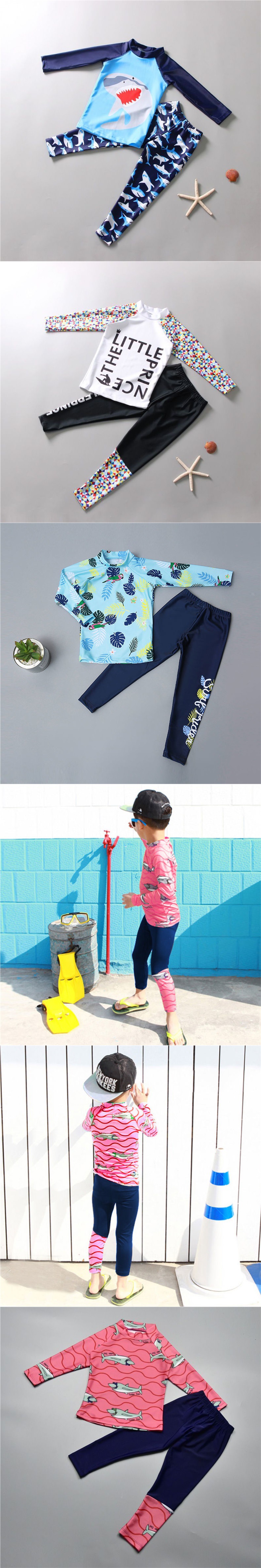 어린이 분할 수영복 잘 생긴 소년 중 큰 아이 만화 귀여운 긴 소매 수영 트렁크 해변 태양 보호 빠른 건조 한국스토어 가기