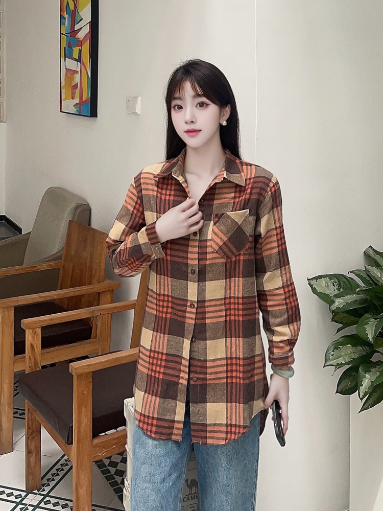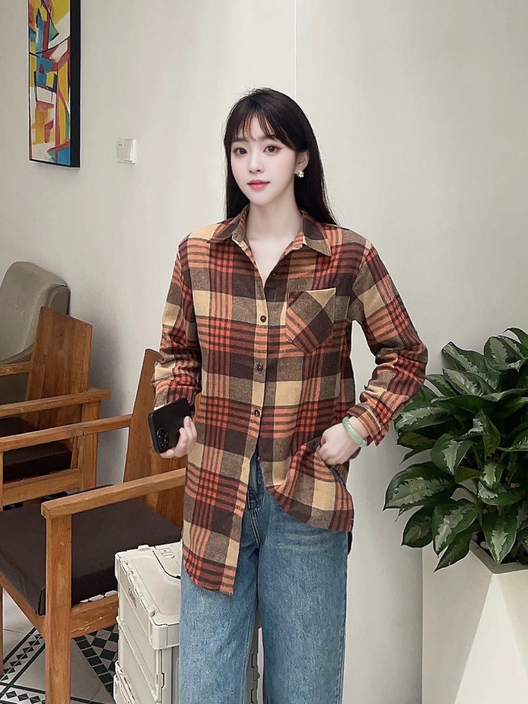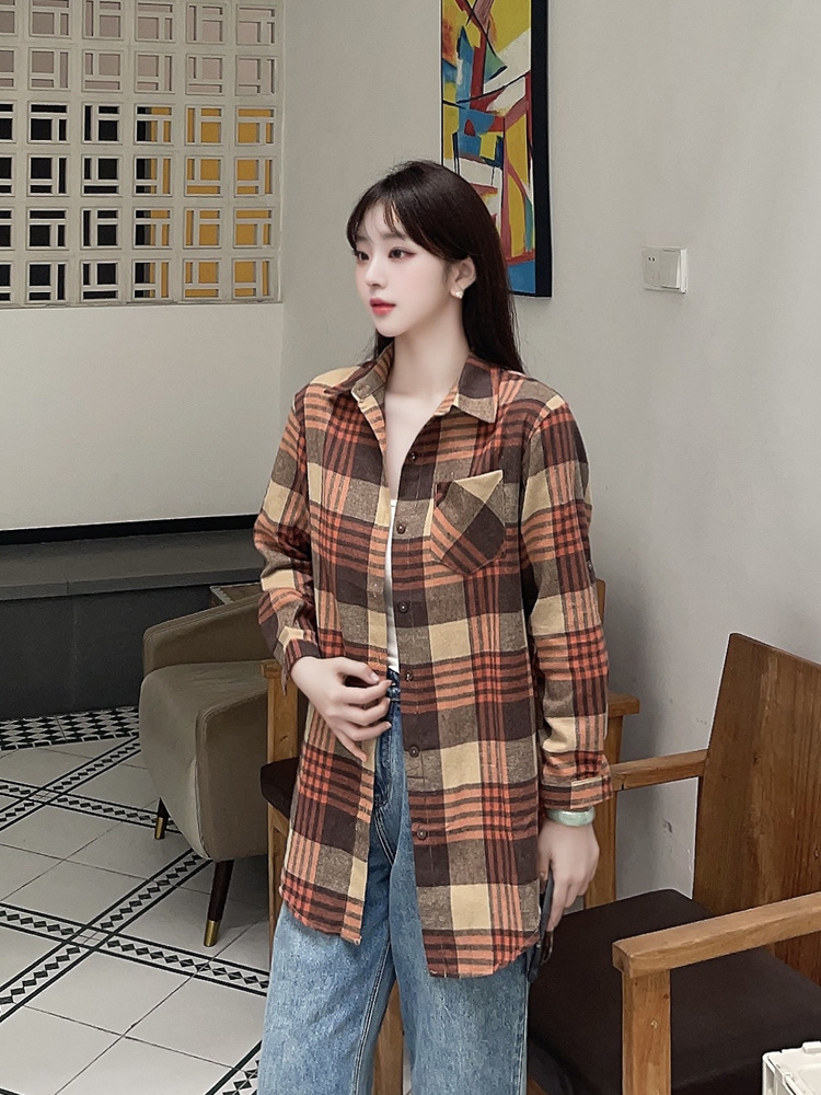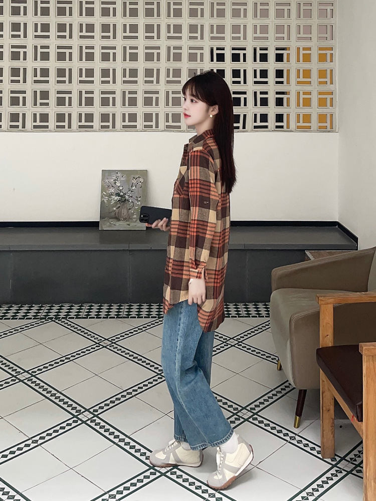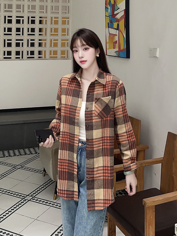 격자 무늬 셔츠 코트 여성 중간 길이의 봄 및 가을 외부 면화 및 리넨 셔츠 긴팔 선 스크린 셔츠 서양식 최고 디자인 감각스토어 가기