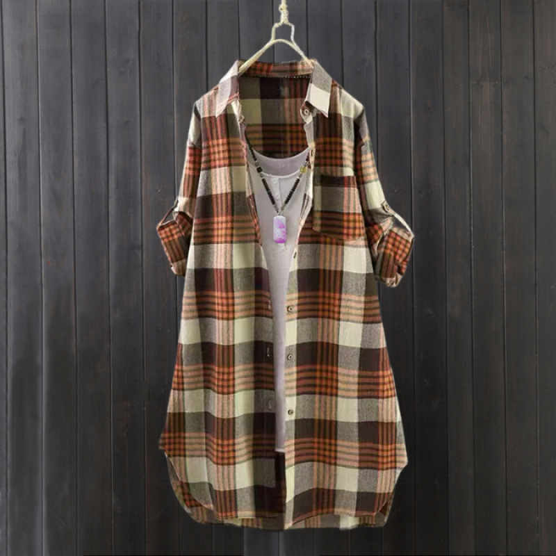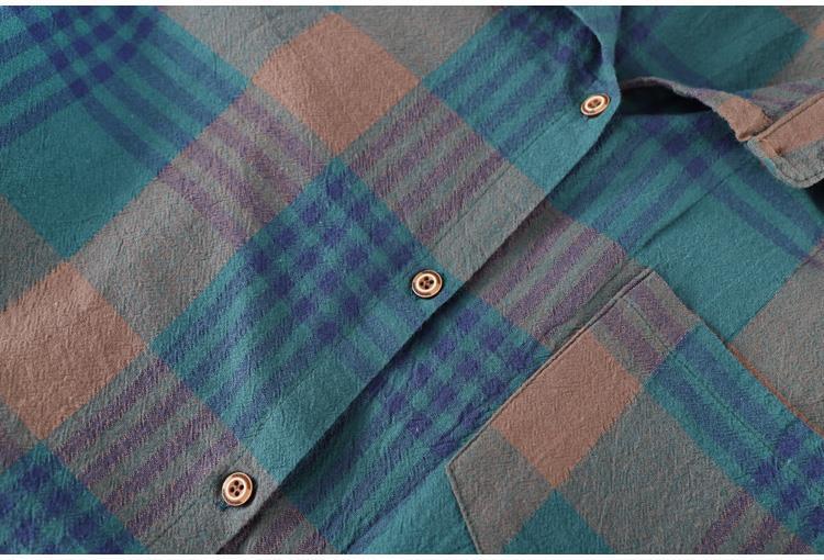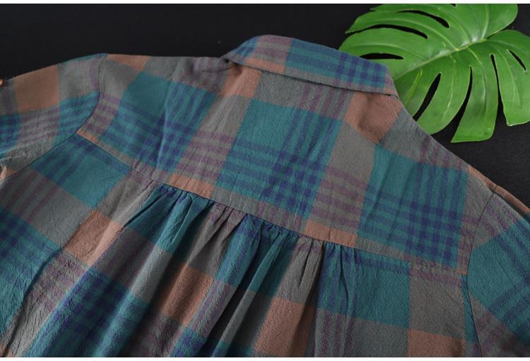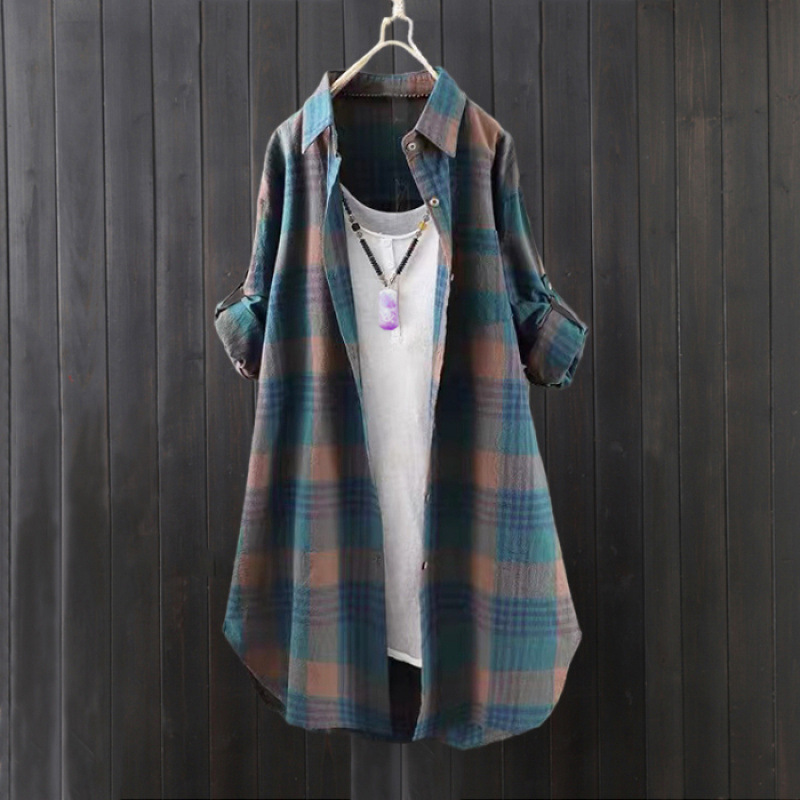 격자 무늬 셔츠 코트 여성 중간 길이의 봄 및 가을 외부 면화 및 리넨 셔츠 긴팔 선 스크린 셔츠 서양식 최고 디자인 감각