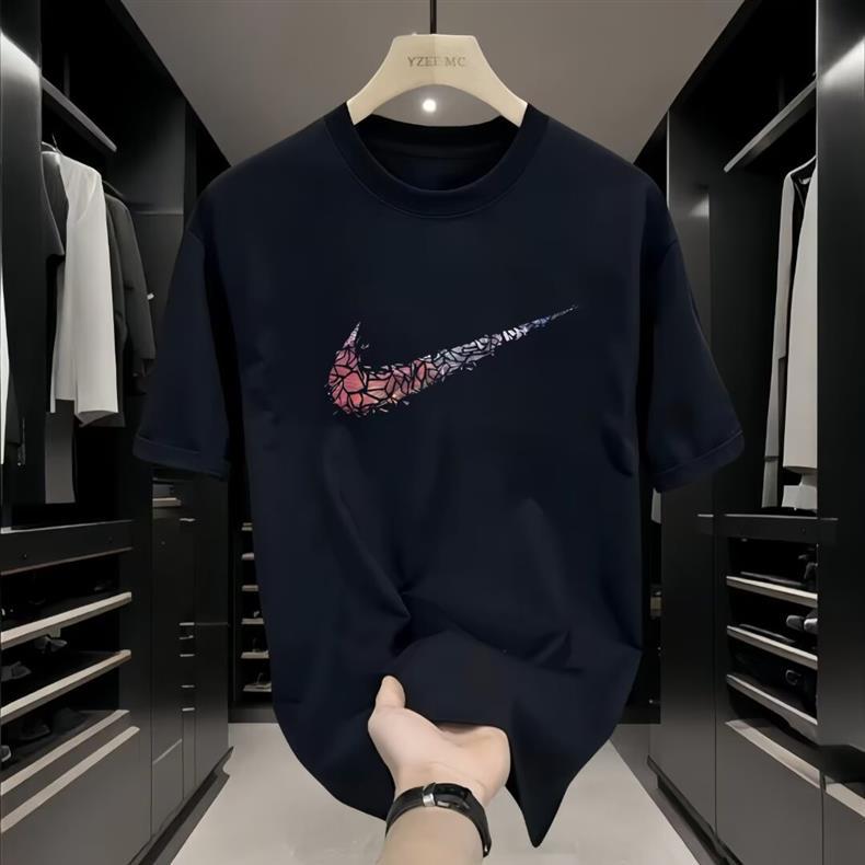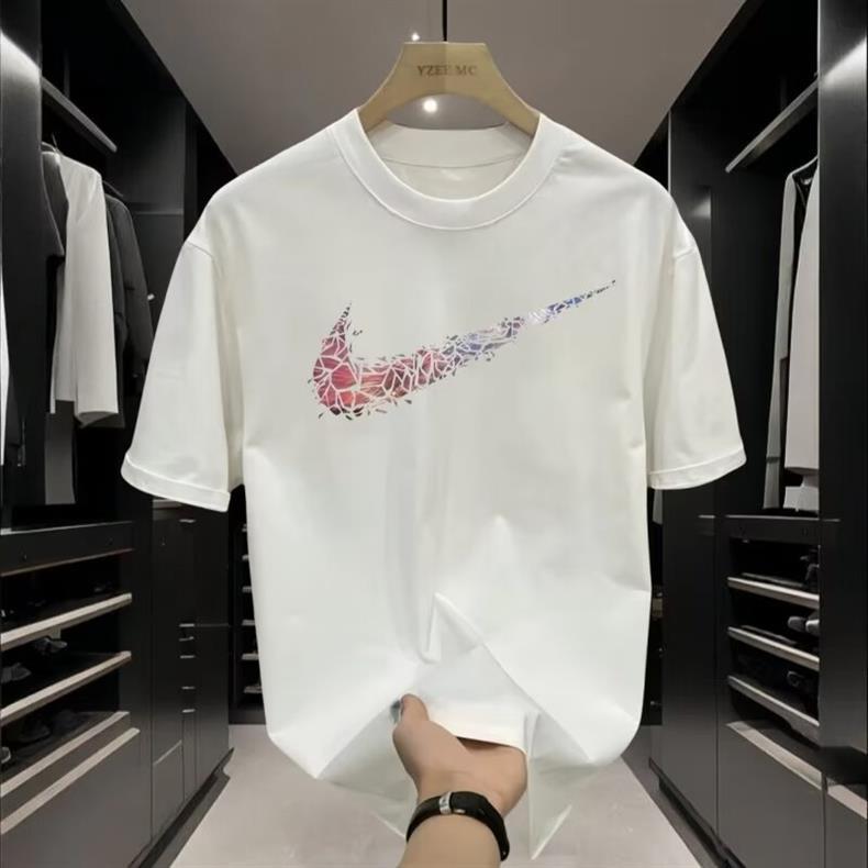 2024 여름 신작 레터 프린트 반팔 티셔츠 폴리 에스터 라운드 넥 슬림 반팔 다목적 트렌디 반팔 남성스토어 가기