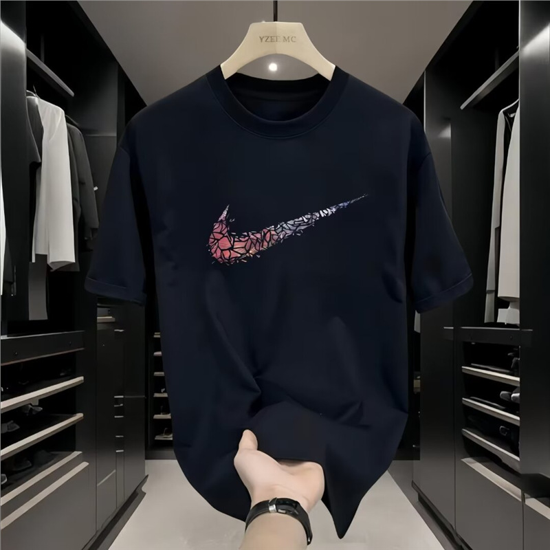2024 여름 신작 레터 프린트 반팔 티셔츠 폴리 에스터 라운드 넥 슬림 반팔 다목적 트렌디 반팔 남성