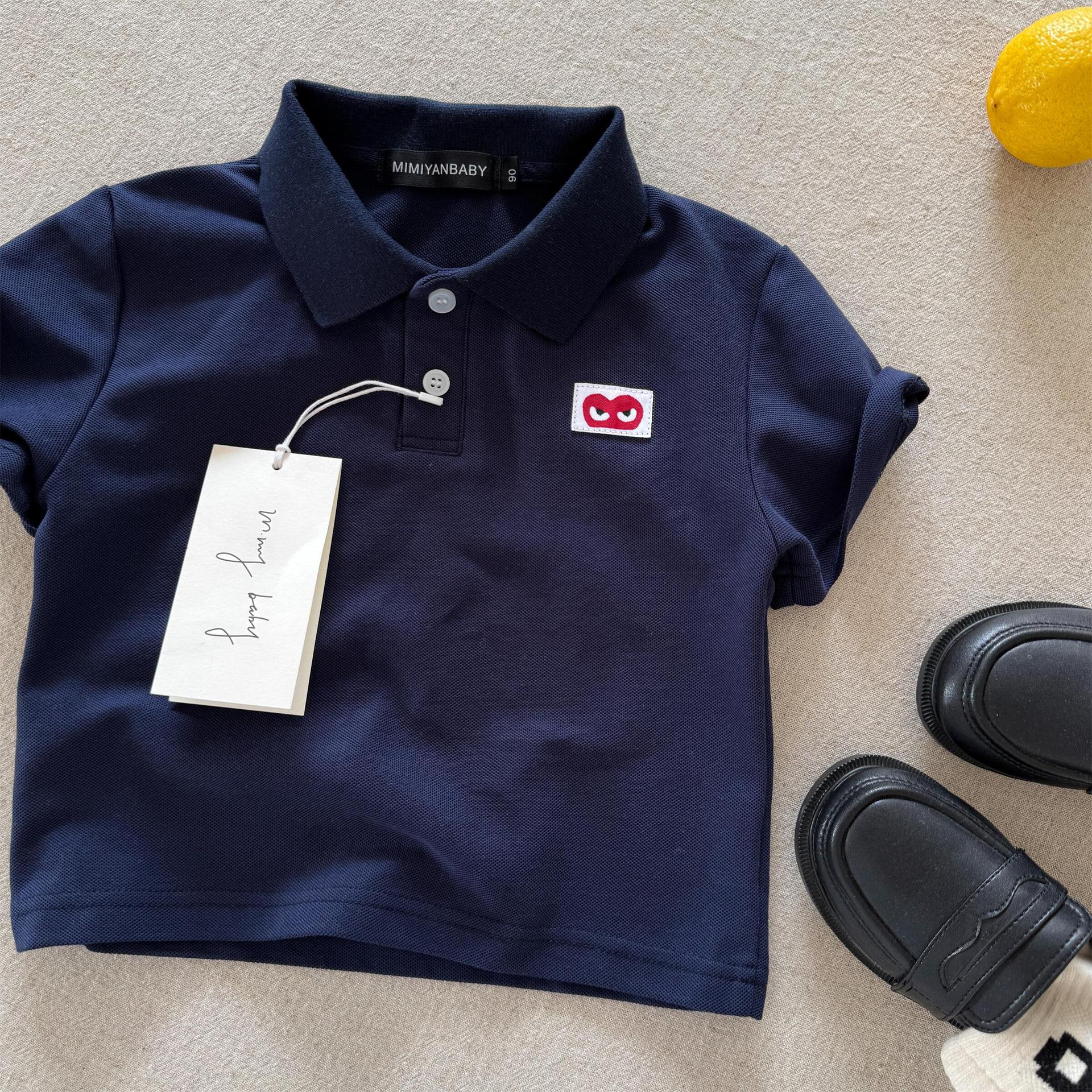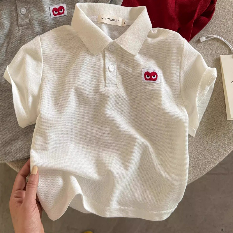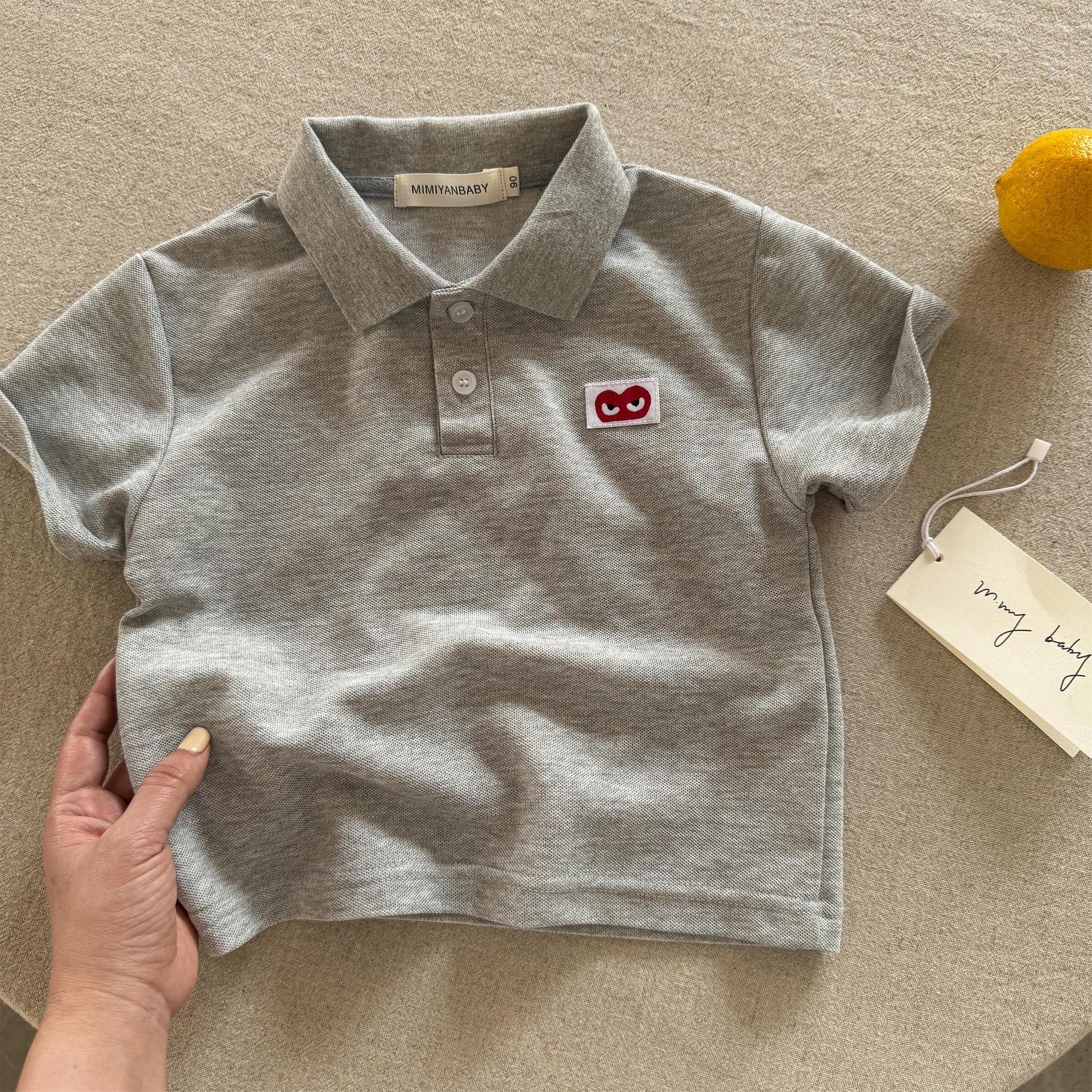 여름 새 소년 솔리드 컬러 탑 느슨한 아기 사랑 티셔츠 여성용 짧은 소매 새로운 어린이 폴로 셔츠 얇은