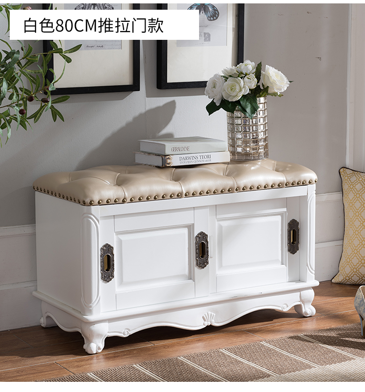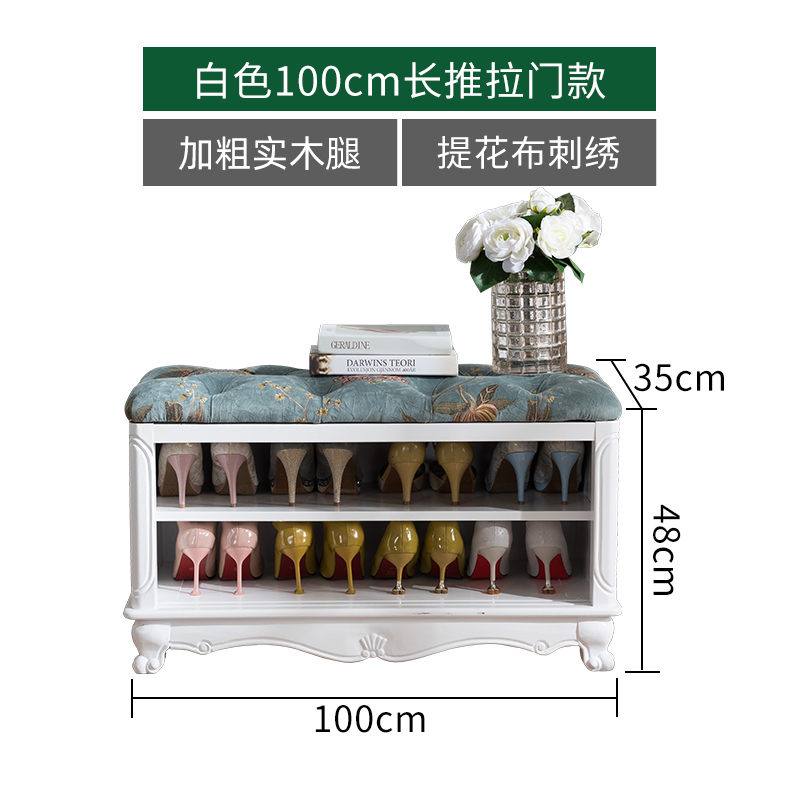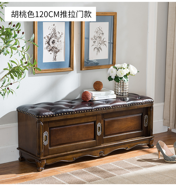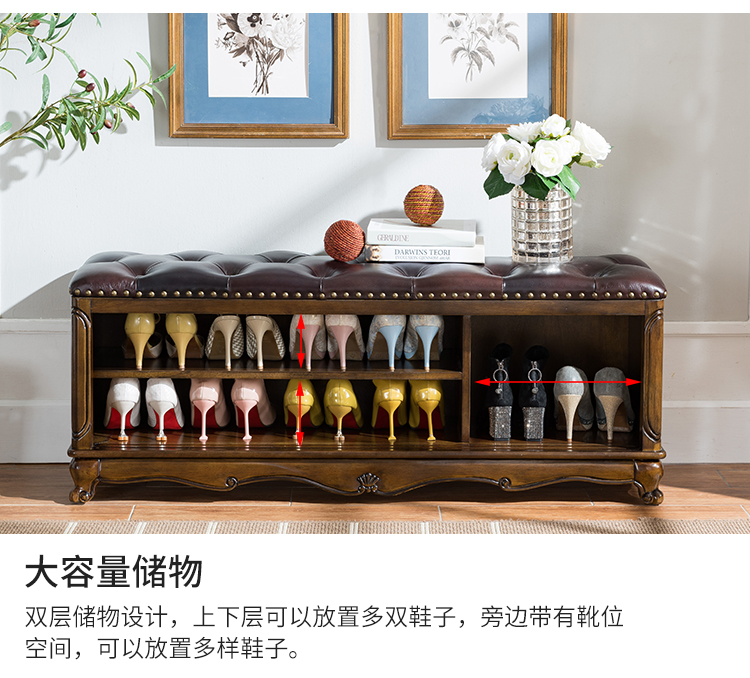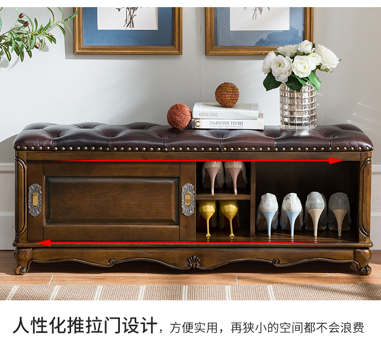 조각 된 미국식 솔리드 우드 신발 변경 의자 신발 캐비닛 가정용 문 소프트 백 쿠션 밀봉 가능한 신발 캐비닛 다기능 신발 캐비닛