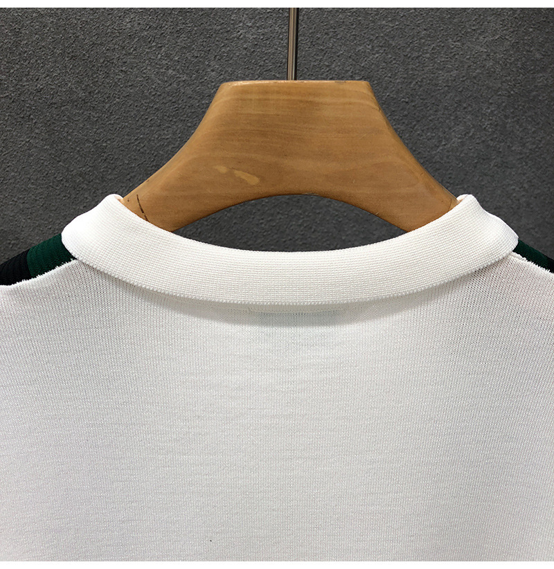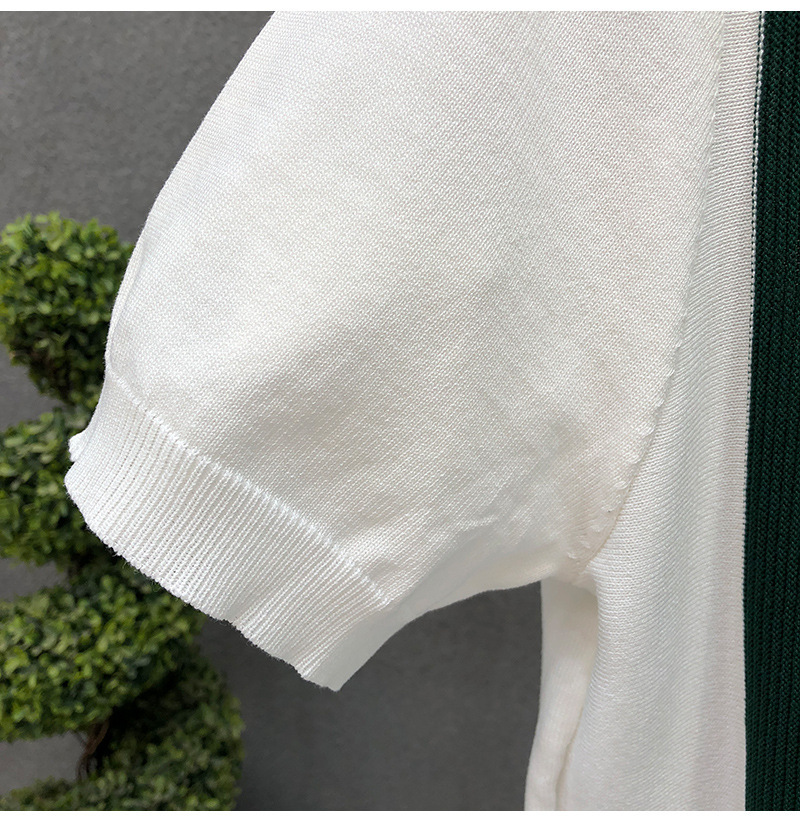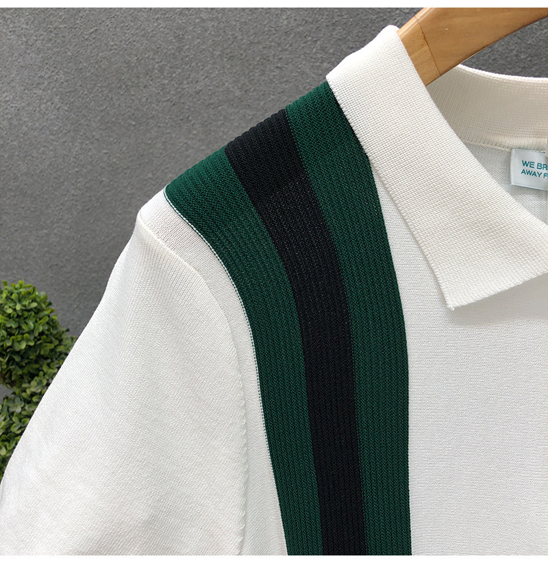 여름 한국 스타일 청소년 캐주얼 아이스 실크 슬림 핏 남성 수직 스트라이프 럭 니트 반팔 티셔츠 비즈니스 폴로 셔츠스토어 가기