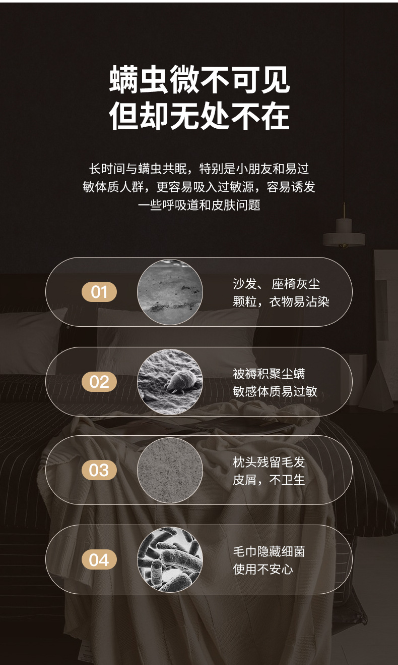 무선 Acarizer 자외선 살균 기계 가정용 침대 진드기 제거 인공물 작은 고성능 진공 청소기 침대스토어 가기