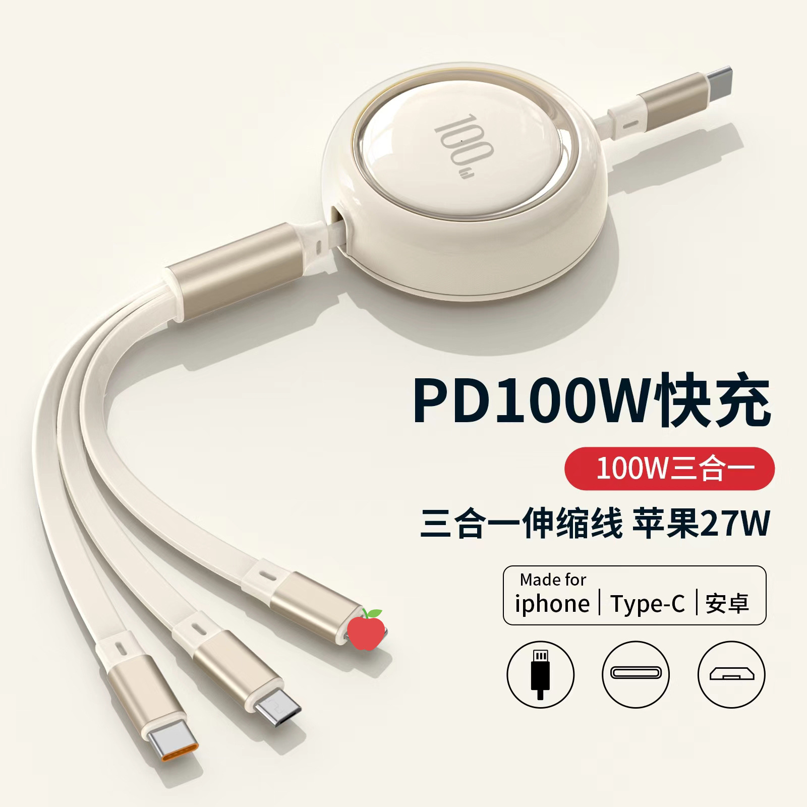 Apple 고속 충전 데이터 케이블에 적합한 미러 텔레스코픽 1-3 데이터 케이블 typec 휴대폰 충전 케이블 3 in 1