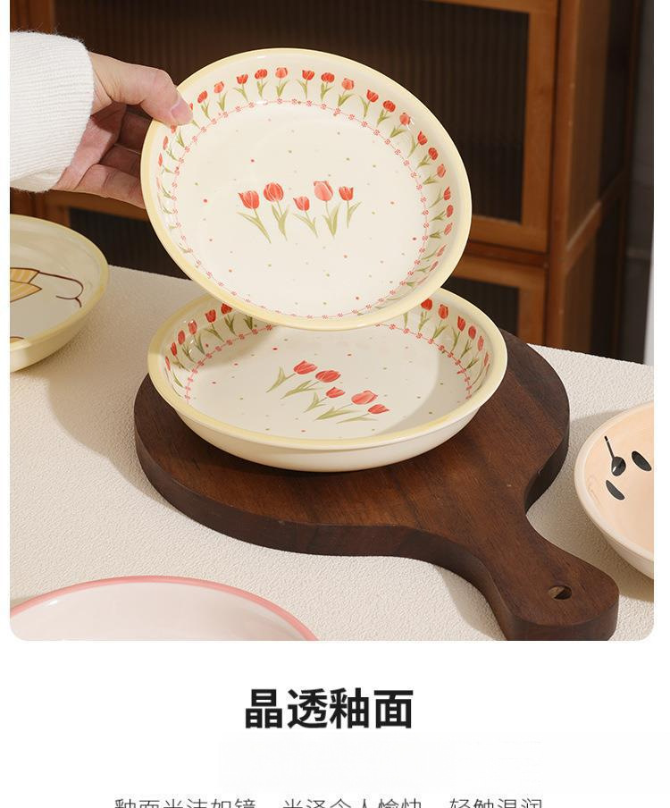 귀여운 세라믹 플레이트 유약 색상 창조적 인 가정용 접시 열 저항하는 전자 레인지 오븐 조식 플레이트 디스크 도매