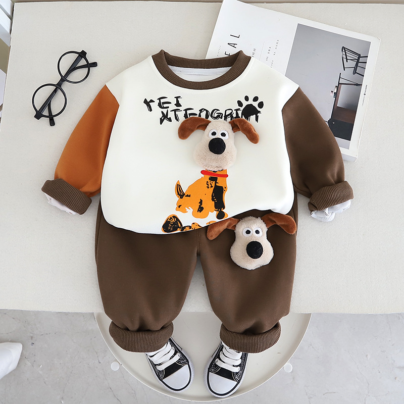 • 다크 브라운 강아지 라운드 넥 긴 소매 슈트