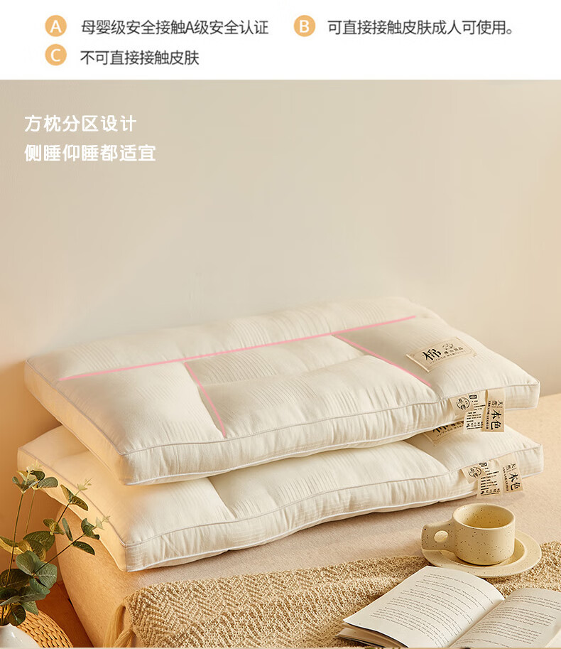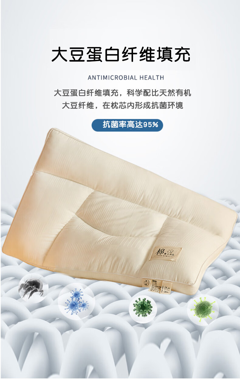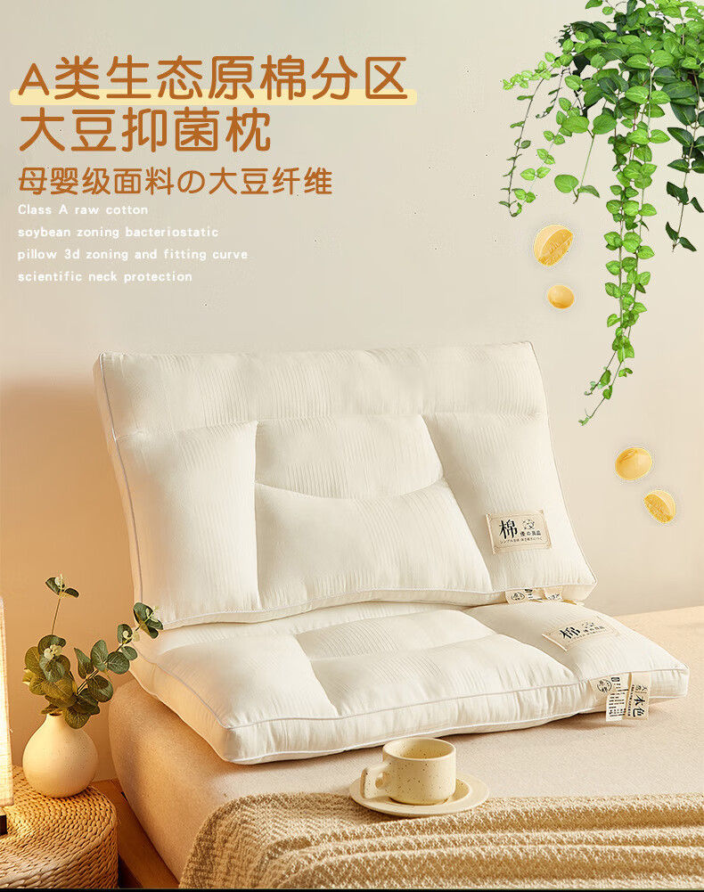 수면용 클래스 A 순면 대두섬유 베개, 경추용 1팩, 싱글 목베개, 낮은 베개심, 풀헤드