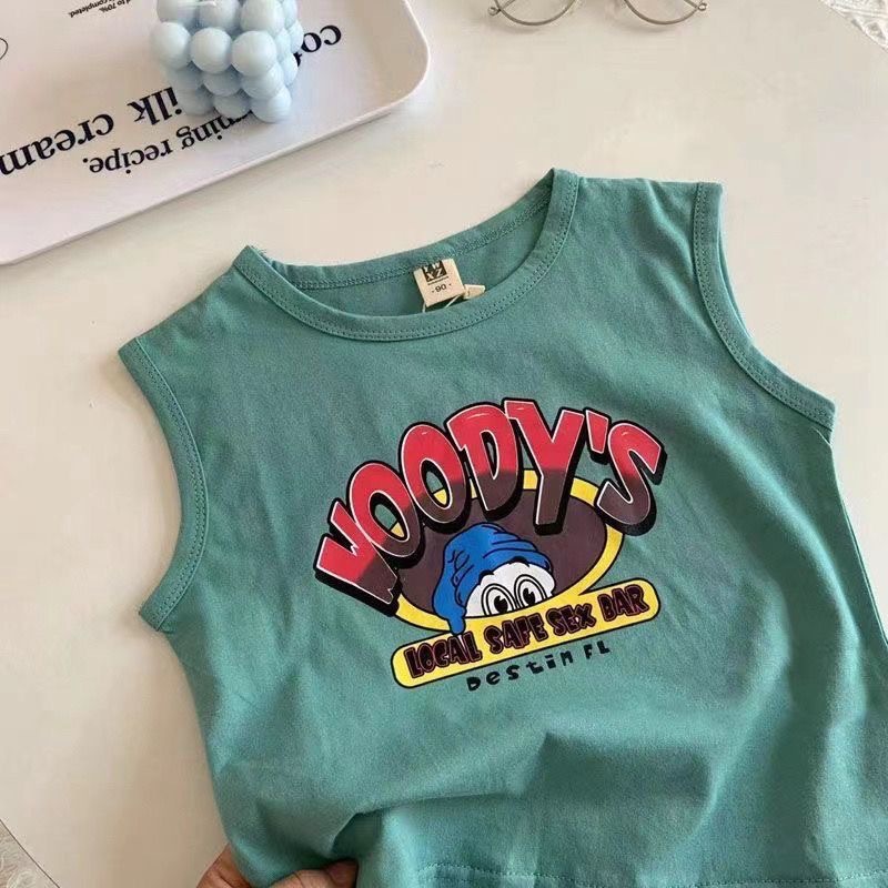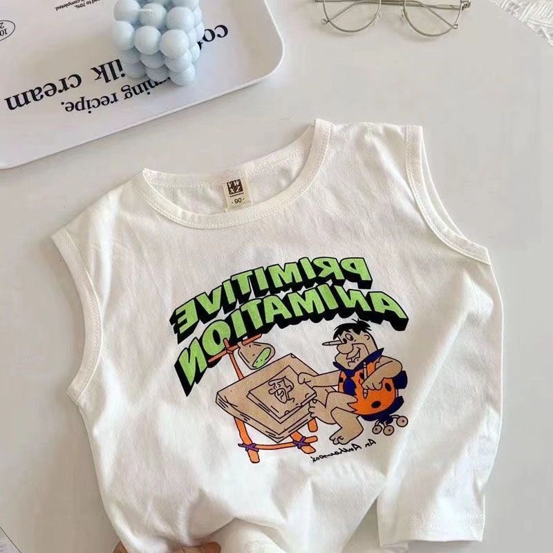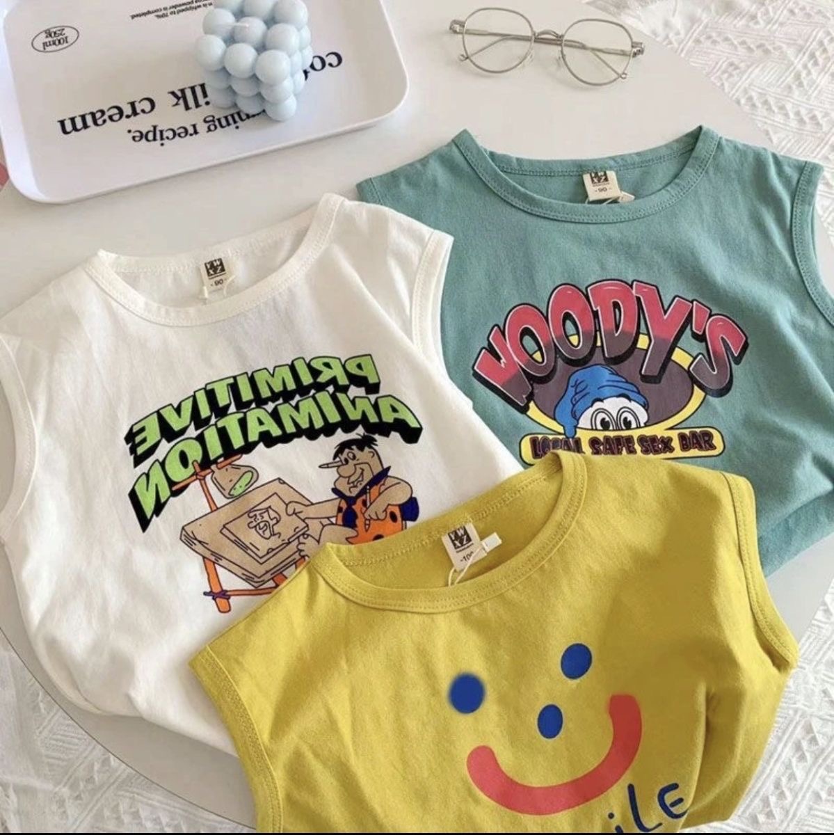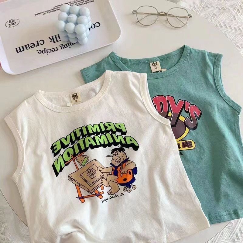 남자와 여자를위한 100 면 민소매 티셔츠 여름 새로운 어린이 올매치 인쇄 아기 조끼 서양식 탑스토어 가기