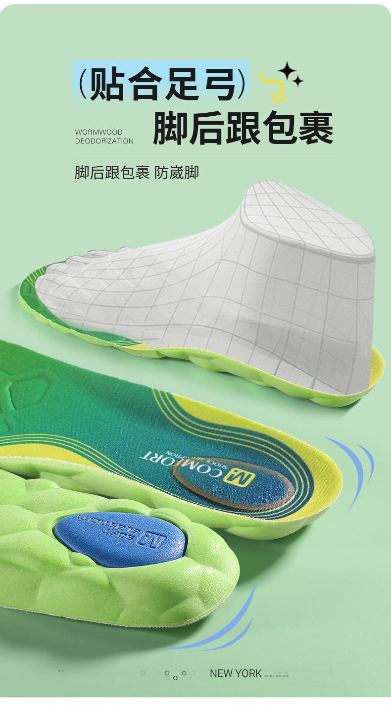 남성과 여성을위한 안창 느낌 땀 흡수 및 냄새 방지 스포츠 에어 쿠션 충격 흡수 슈퍼 소프트 오래 서 피곤하지 않은 통기성 쑥 탈취스토어 가기