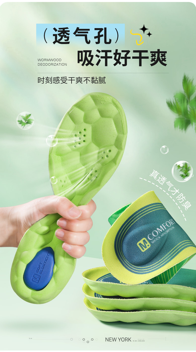 남성과 여성을위한 안창 느낌 땀 흡수 및 냄새 방지 스포츠 에어 쿠션 충격 흡수 슈퍼 소프트 오래 서 피곤하지 않은 통기성 쑥 탈취