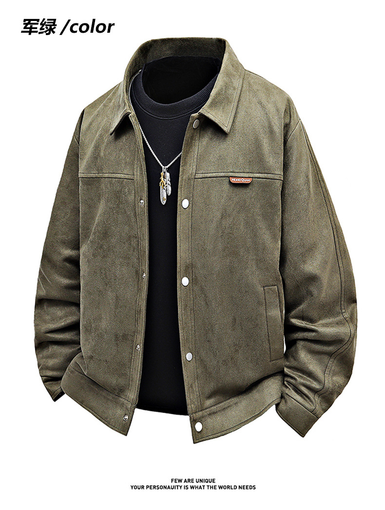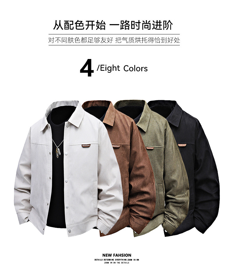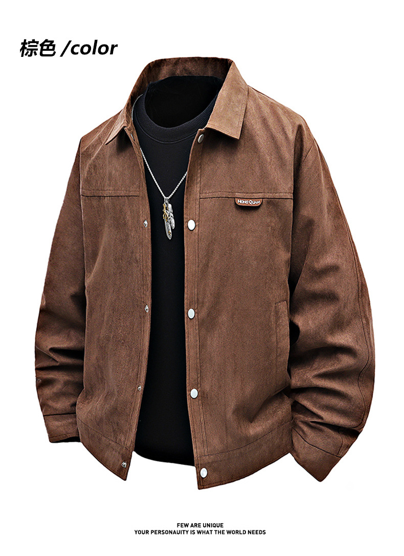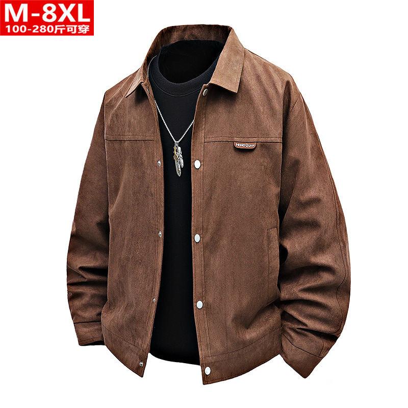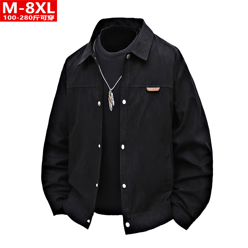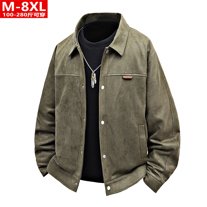 봄과 가을 트렌디 한 홍콩 스타일 남성 잘 생긴 패션 스퀘어 칼라 재킷 뚱뚱한 남성 플러스 사이즈 느슨한 캐주얼 재킷스토어 가기