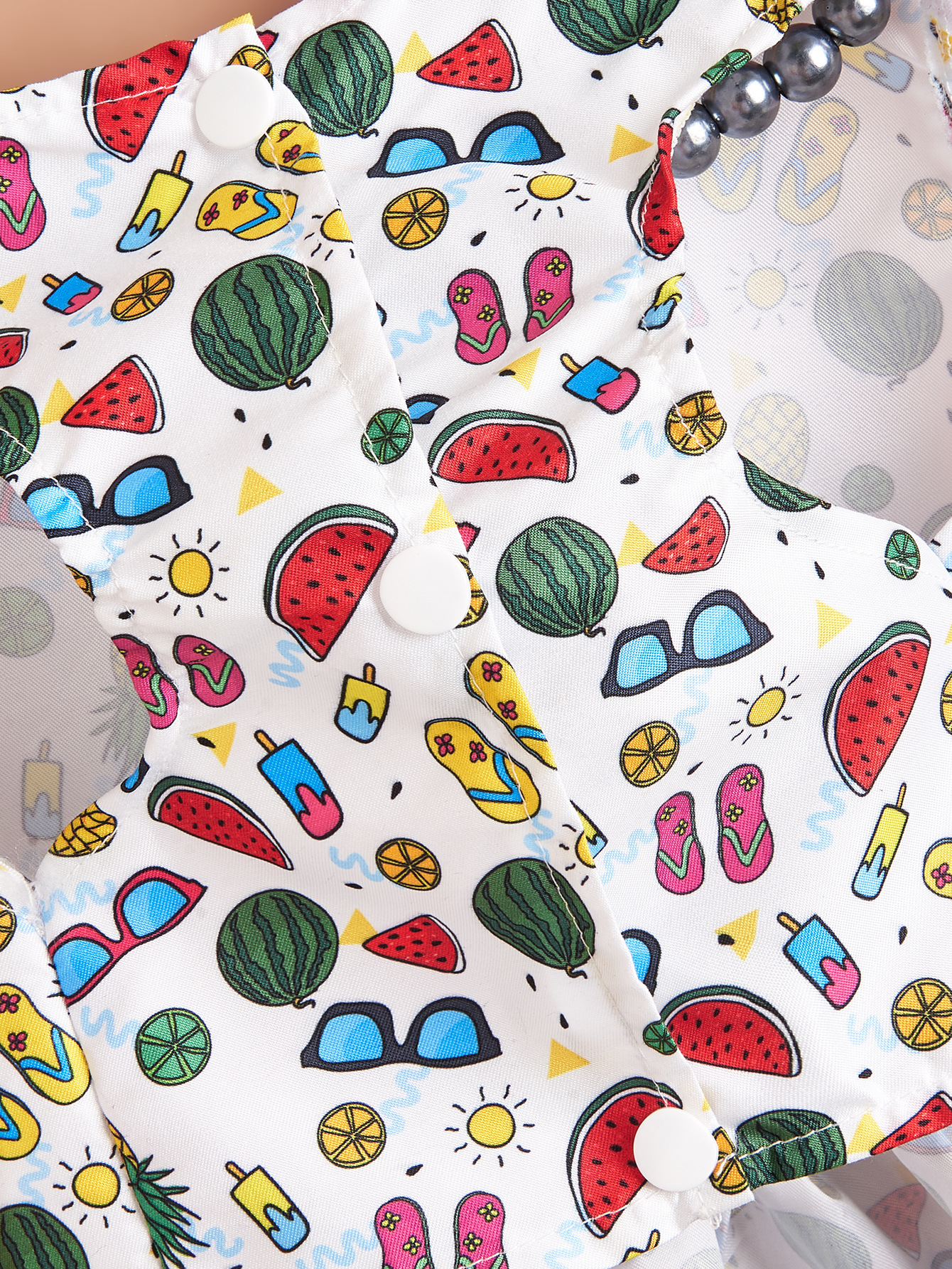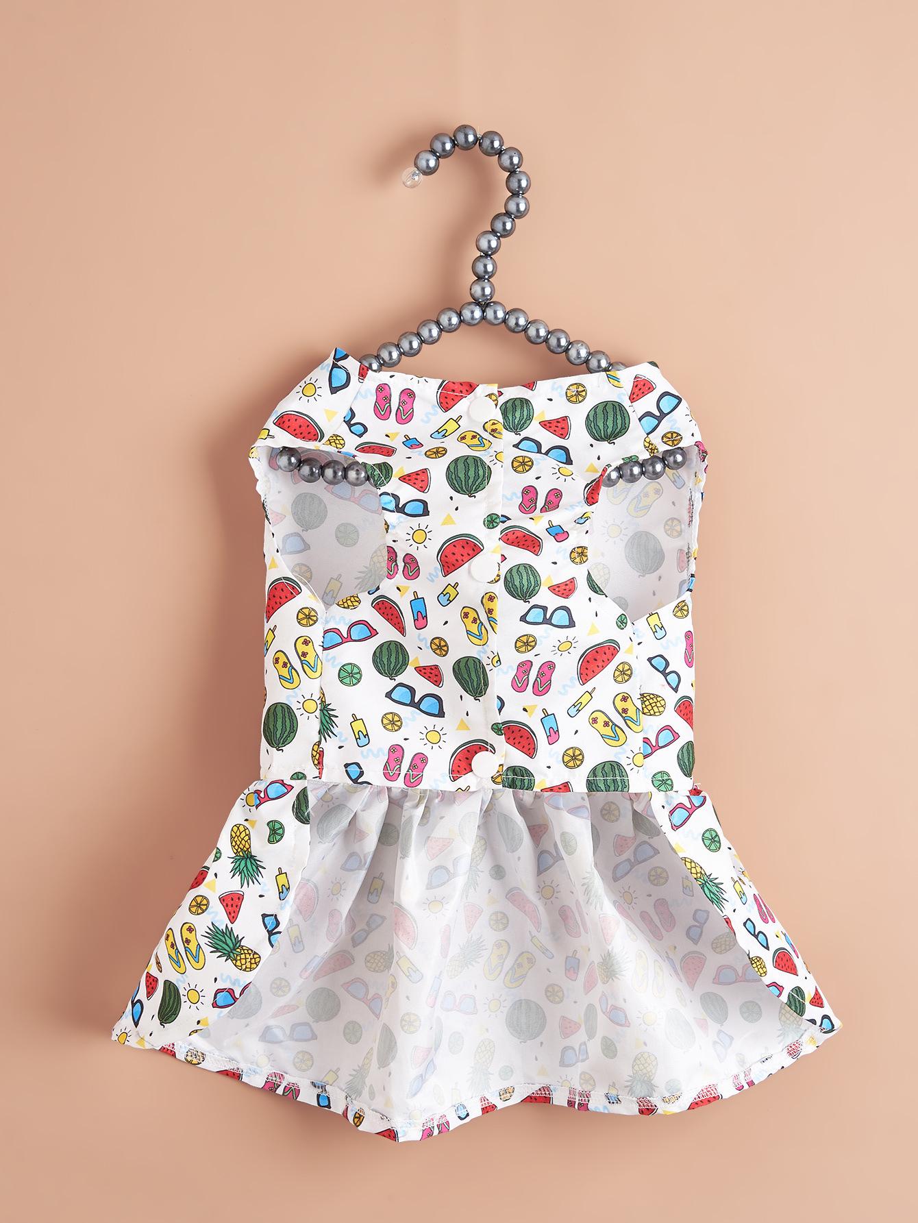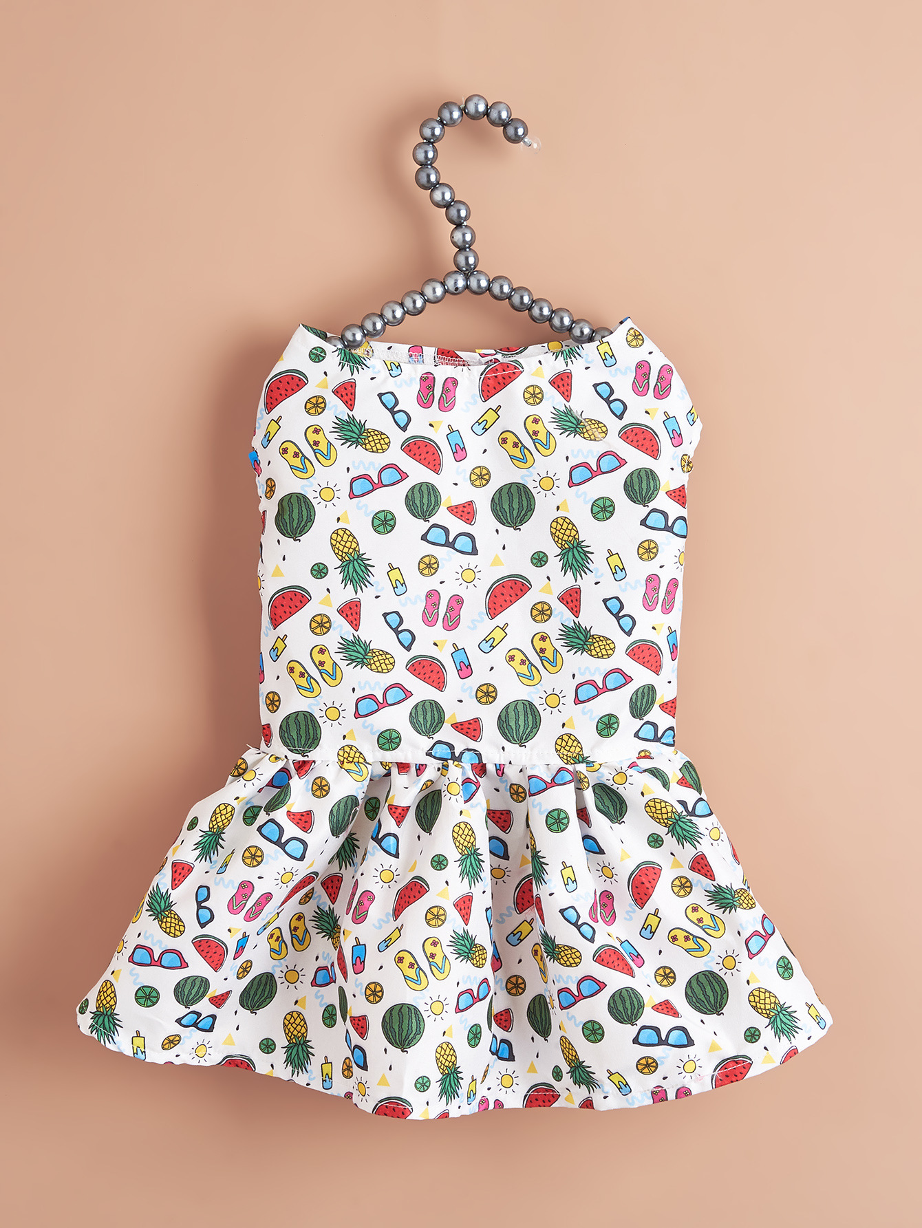 소스 공장 봄 여름 얇은 애완 동물 옷 고양이 테디 푸들 비숑 프리즈 프린트 스커트 중소형 개 옷
