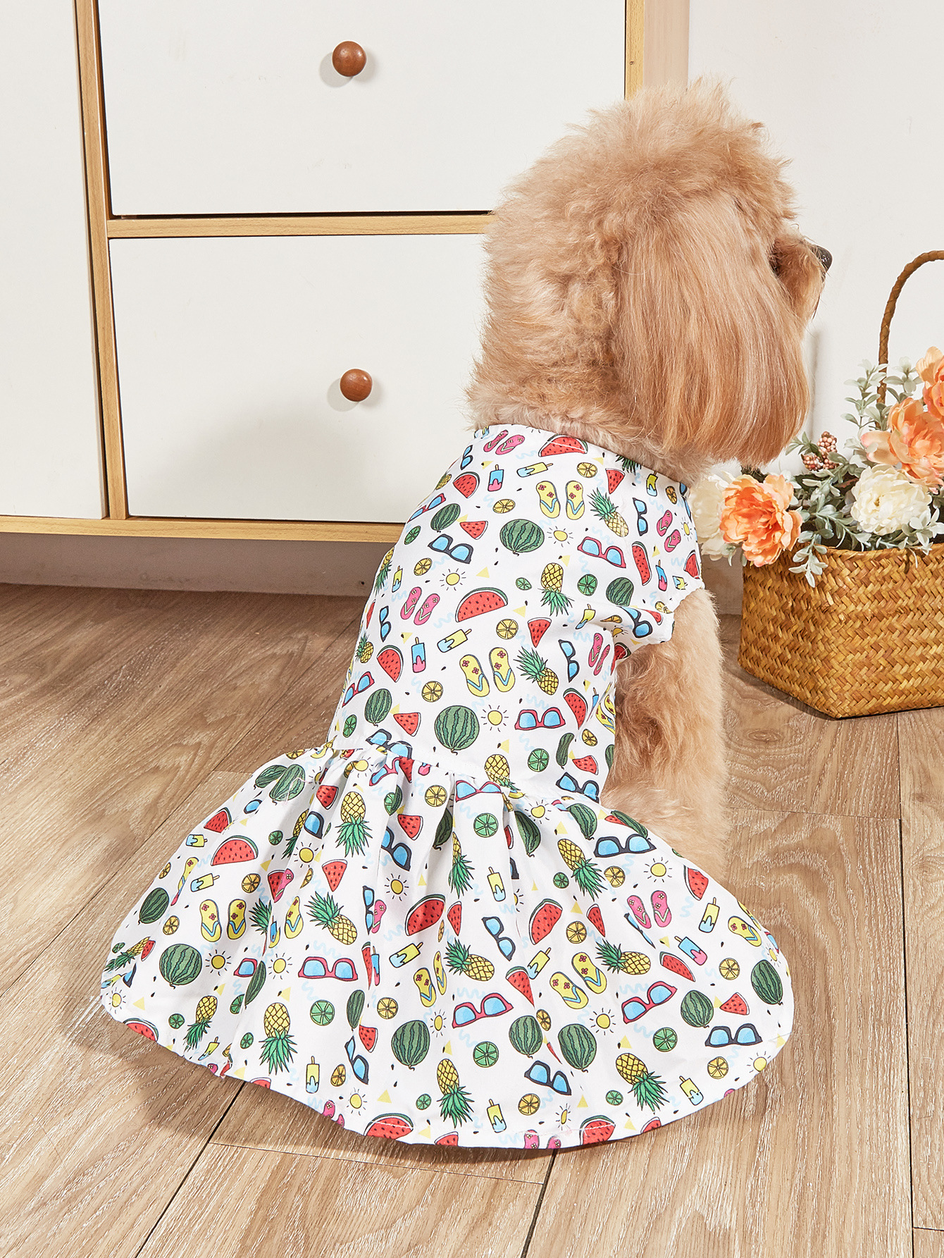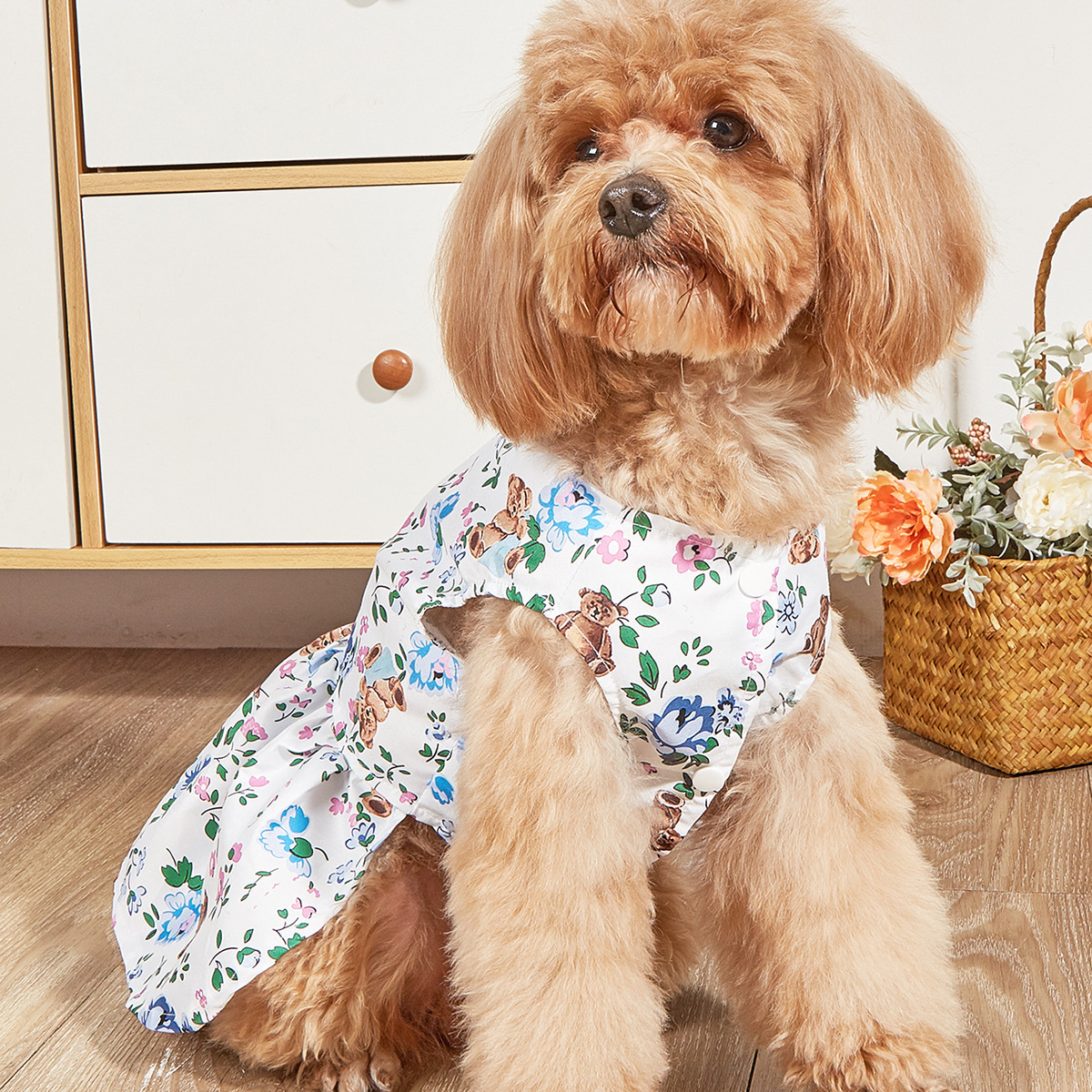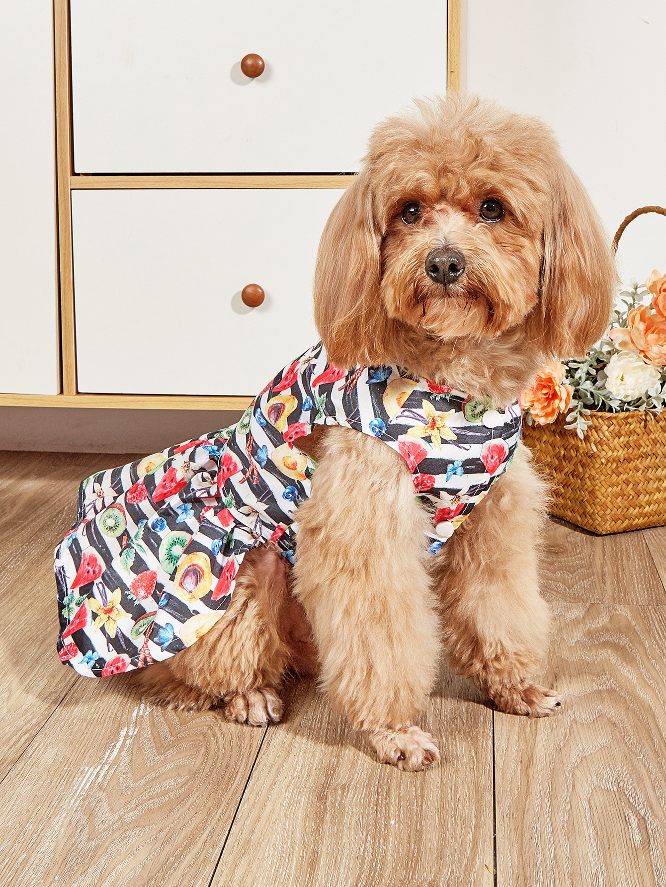 소스 공장 봄 여름 얇은 애완 동물 옷 고양이 테디 푸들 비숑 프리즈 프린트 스커트 중소형 개 옷스토어 가기