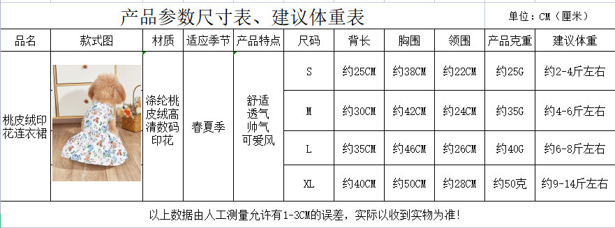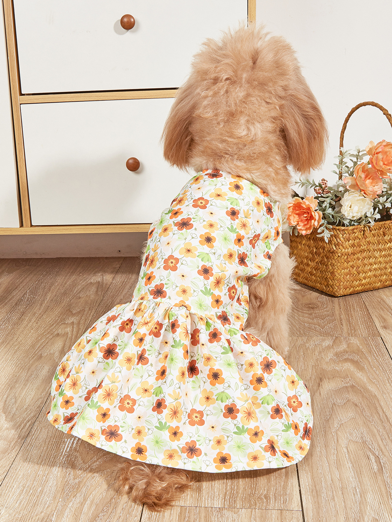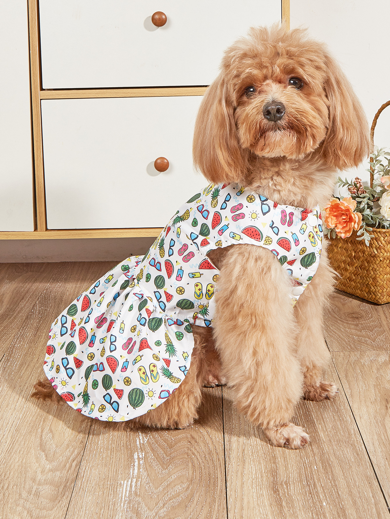 소스 공장 봄 여름 얇은 애완 동물 옷 고양이 테디 푸들 비숑 프리즈 프린트 스커트 중소형 개 옷스토어 가기