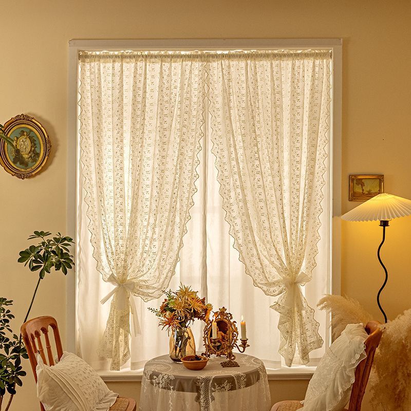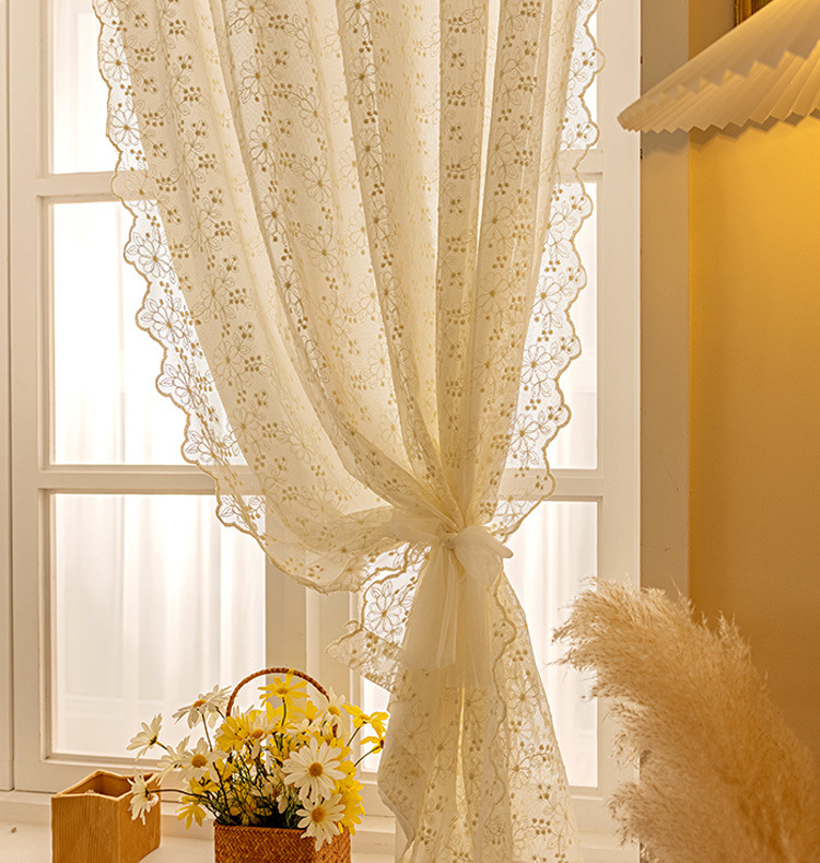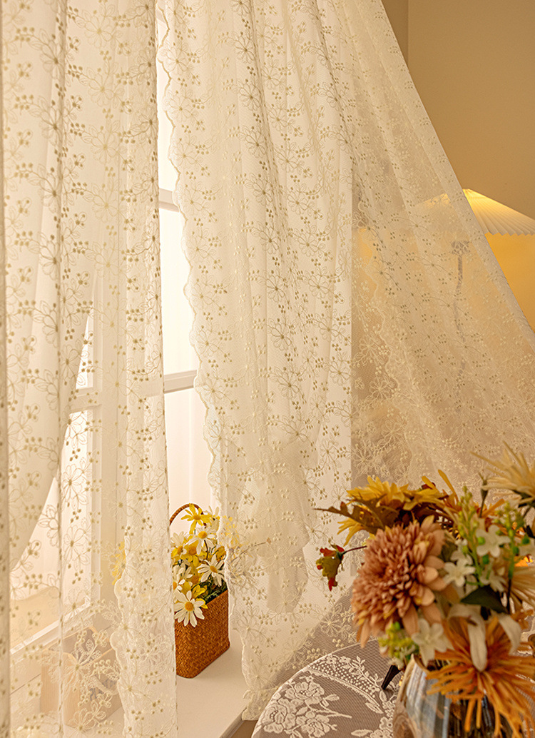 프랑스의 새로운 나비 꽃 커튼 침실 빛 차단 펀치없는 거즈 커튼 스타일 슈퍼 요정 광선 투과 레이스 더블 레이어 커튼