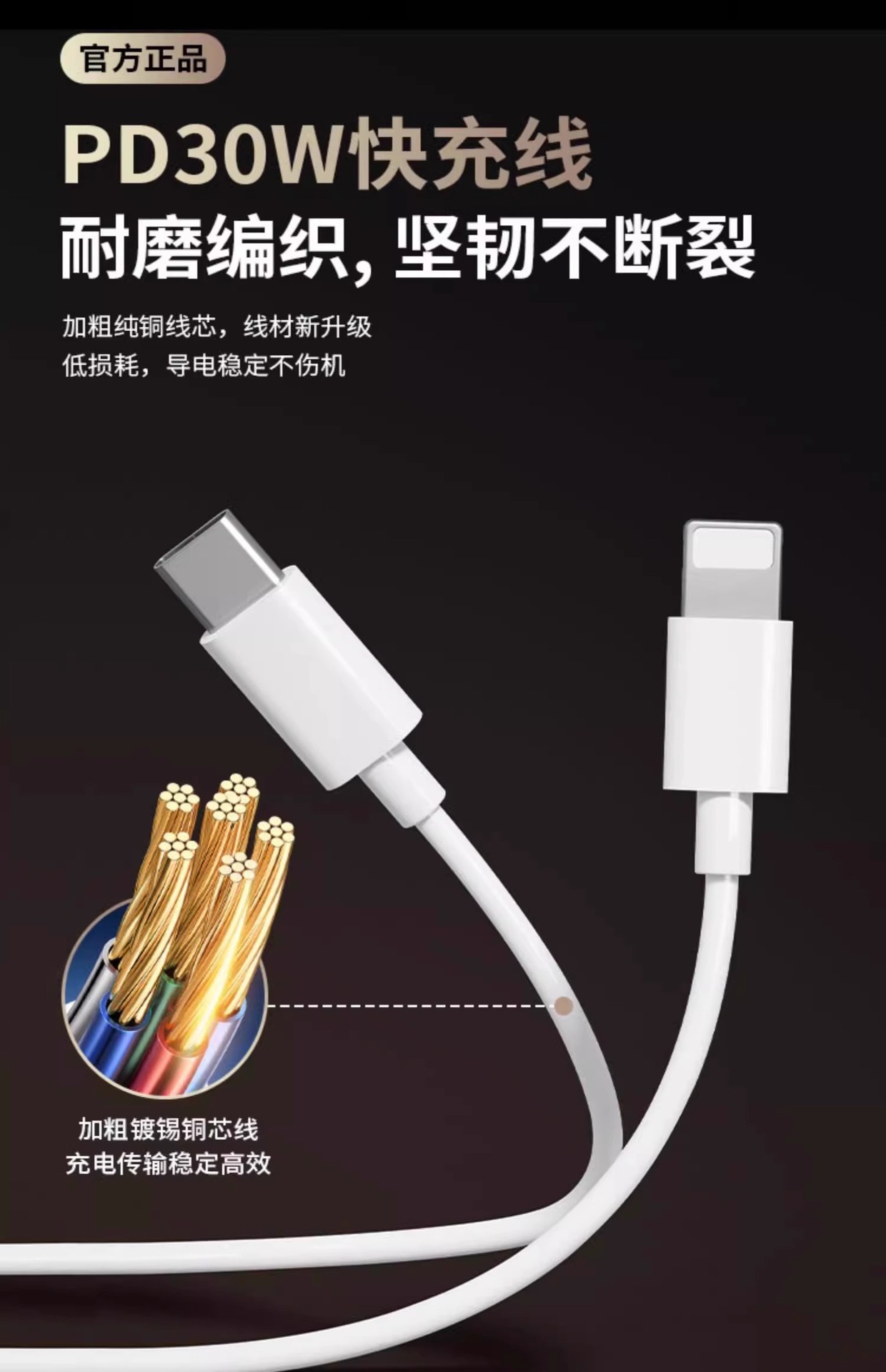 • 30WPD 고속 충전 헤드 + 1m PD 플래시 충전 케이블