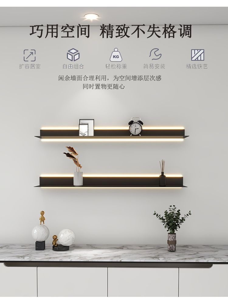 수납 선반, 핸드메이드 테이블, 벽 수납 선반, 거실 소형 디스플레이 선반, 두꺼운 탄소강 벽걸이형, 조명 스트립 추가 가능