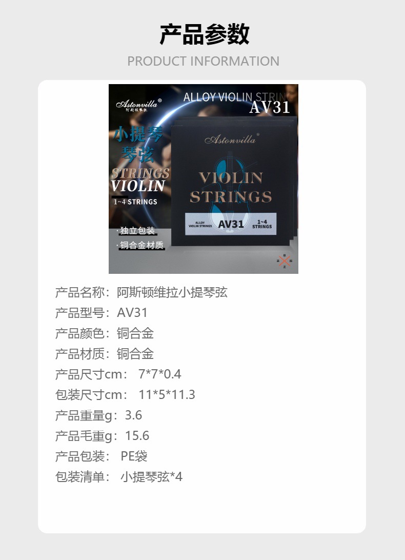 애스턴 빌라 AV31 바이올린 문자열 구리 합금 세트 문자열 선택 기타 연습 문자열 바이올린 액세서리스토어 가기
