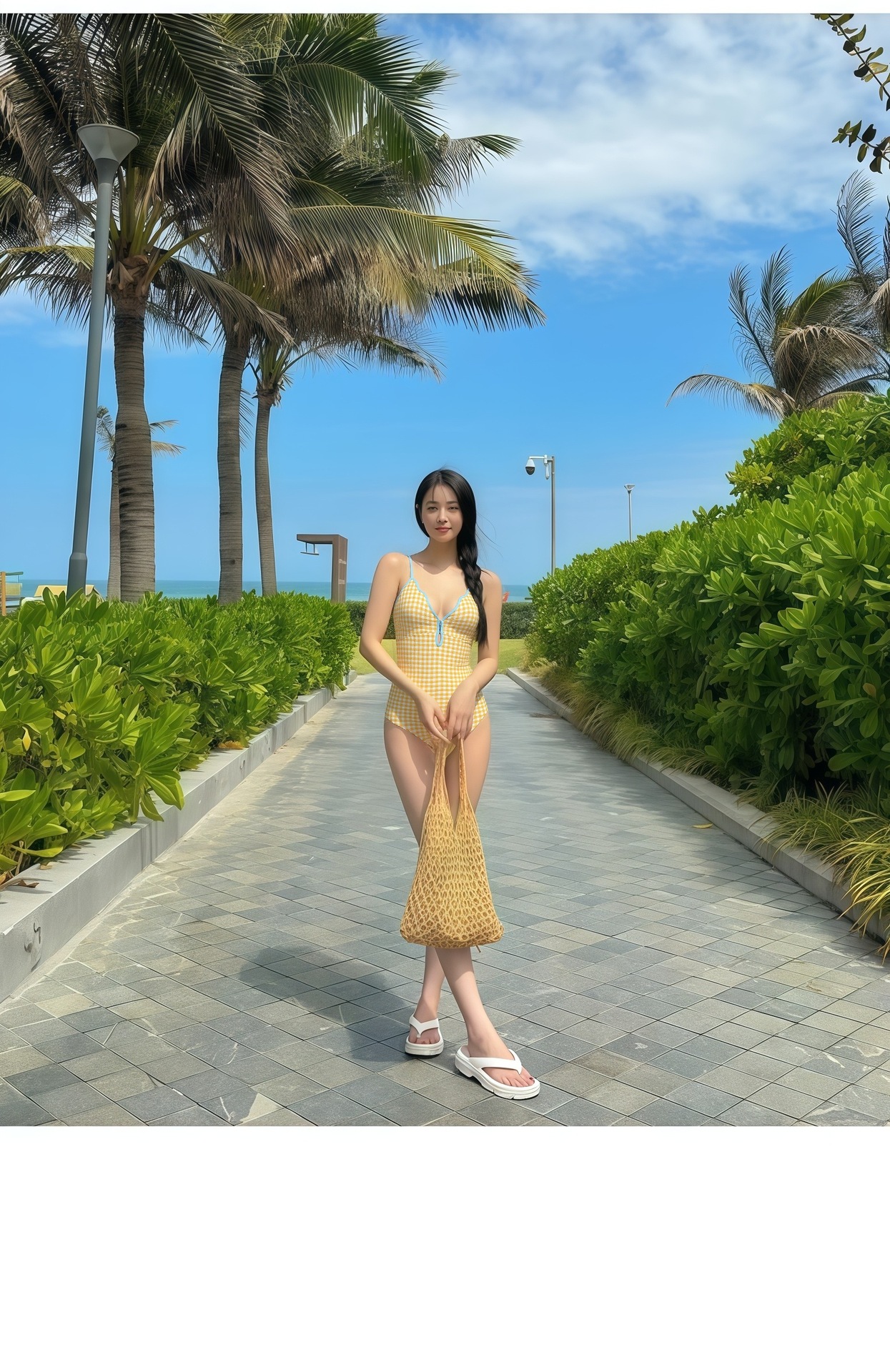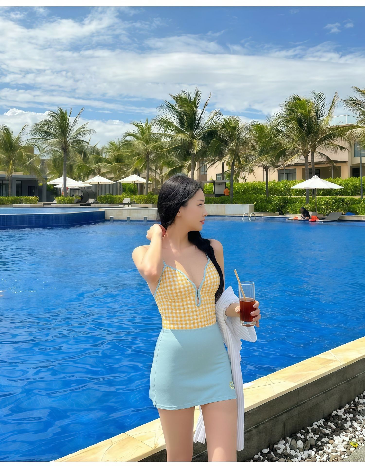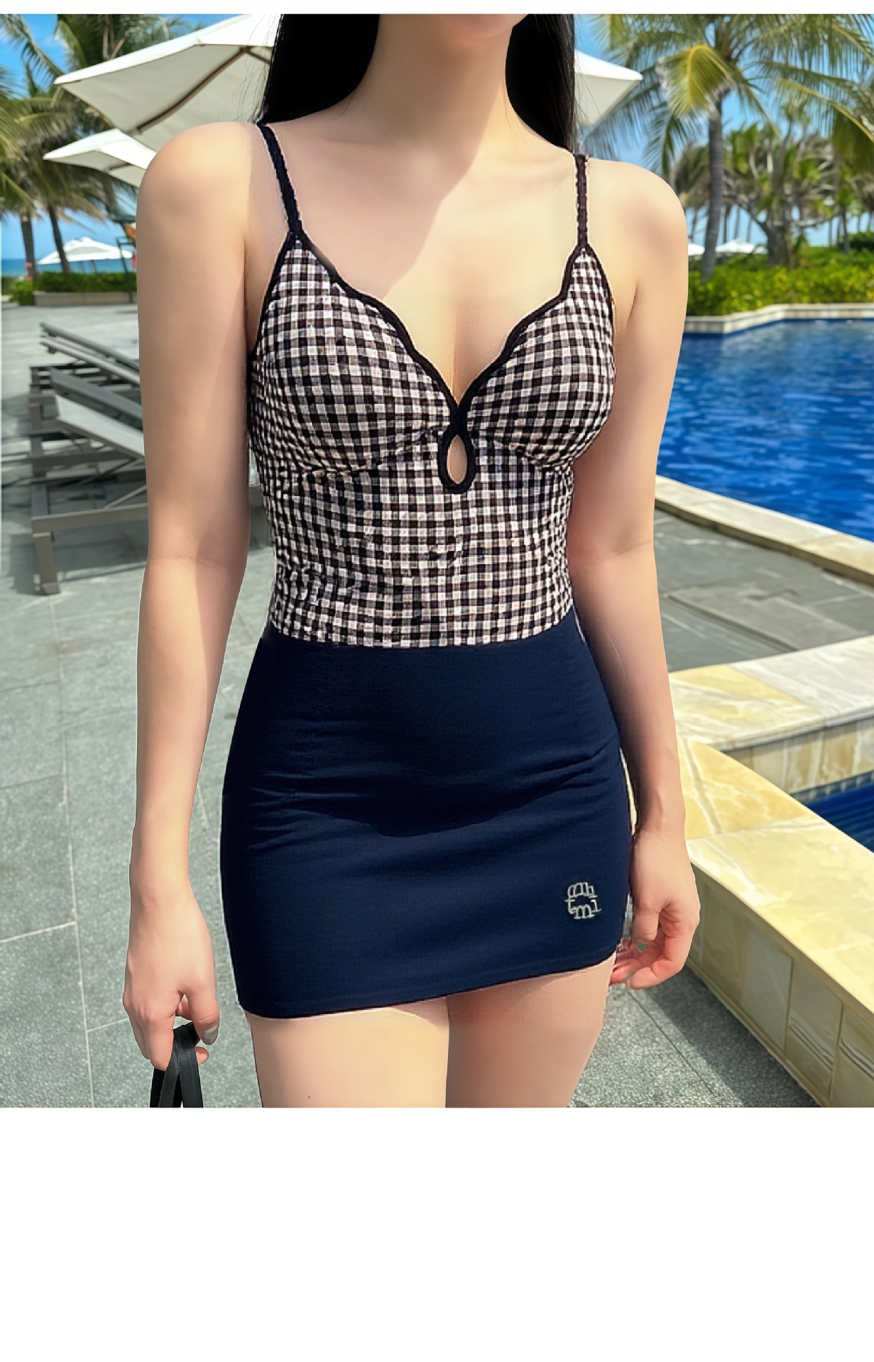 섬 휴가를 위한 새로운 스타일의 여성스러운 도파민 수영복, 고급스럽고 순수한 섹시 스타일의 원피스 스커트 스타일 보수적스토어 가기