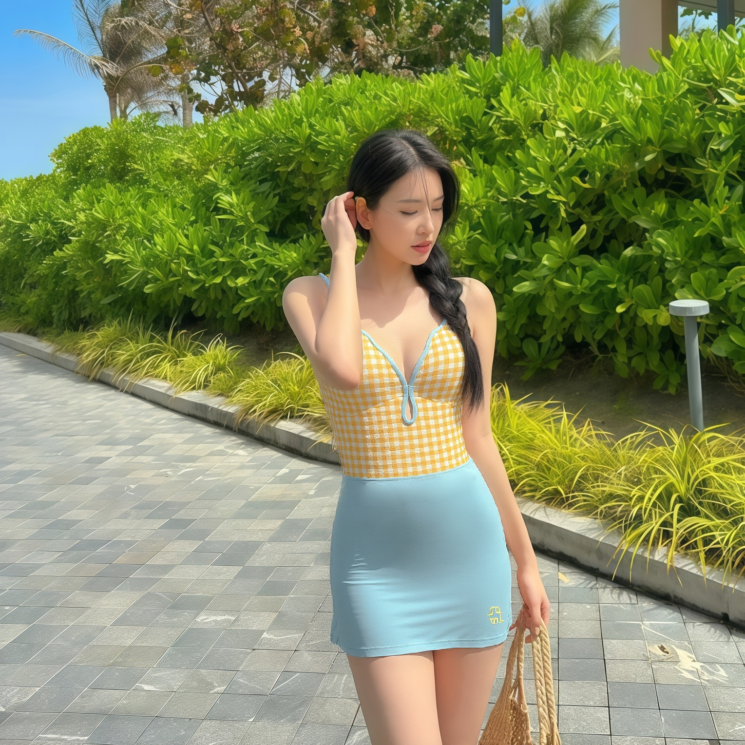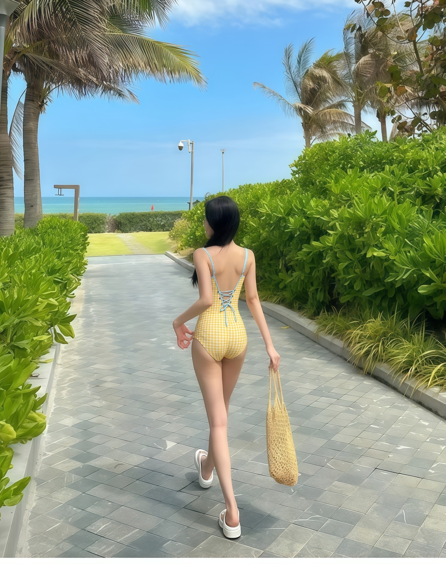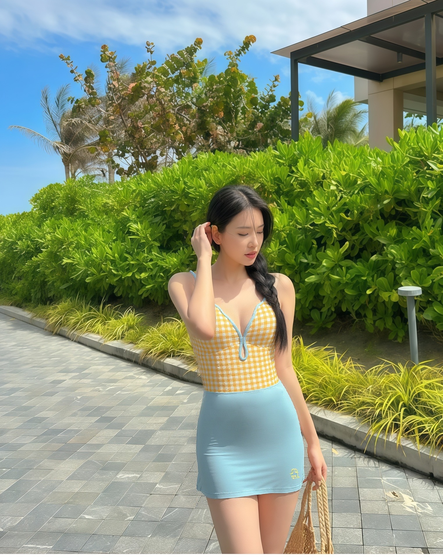 섬 휴가를 위한 새로운 스타일의 여성스러운 도파민 수영복, 고급스럽고 순수한 섹시 스타일의 원피스 스커트 스타일 보수적스토어 가기