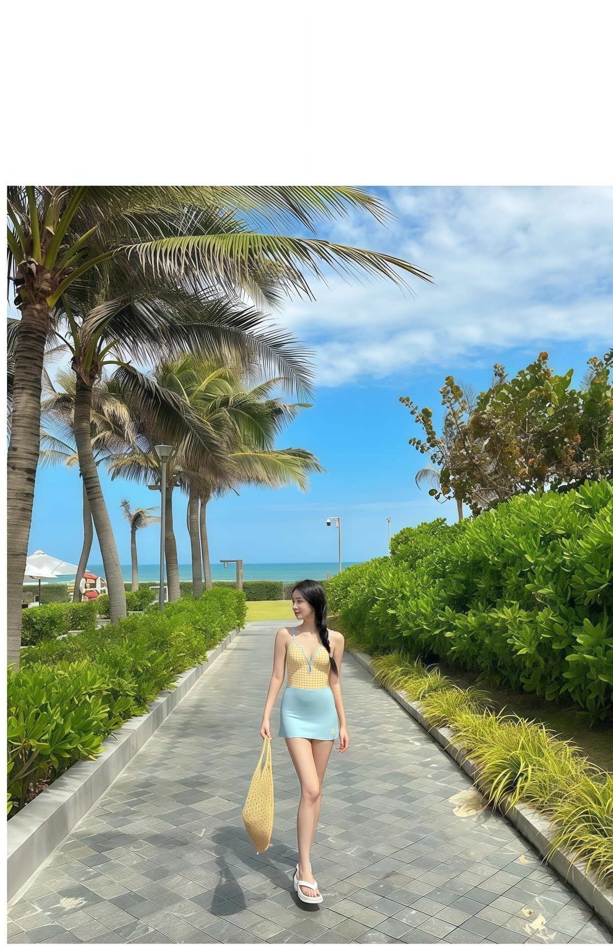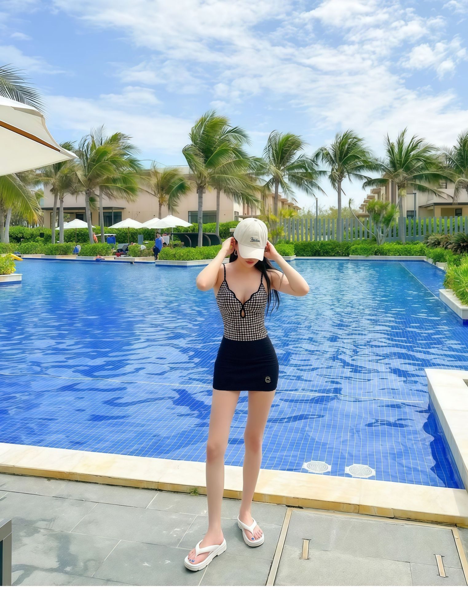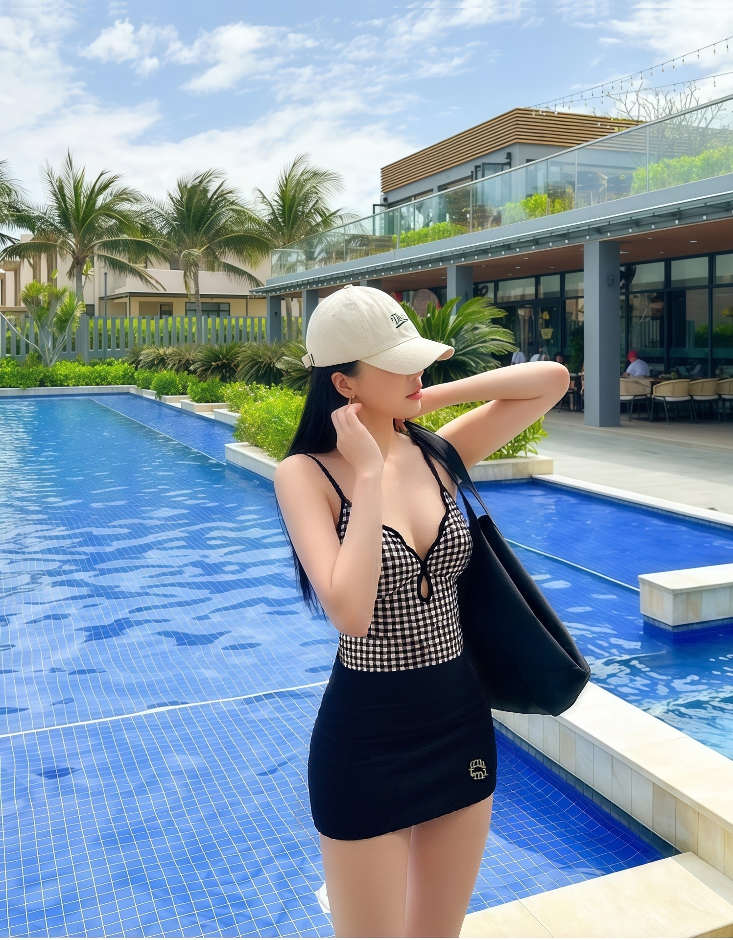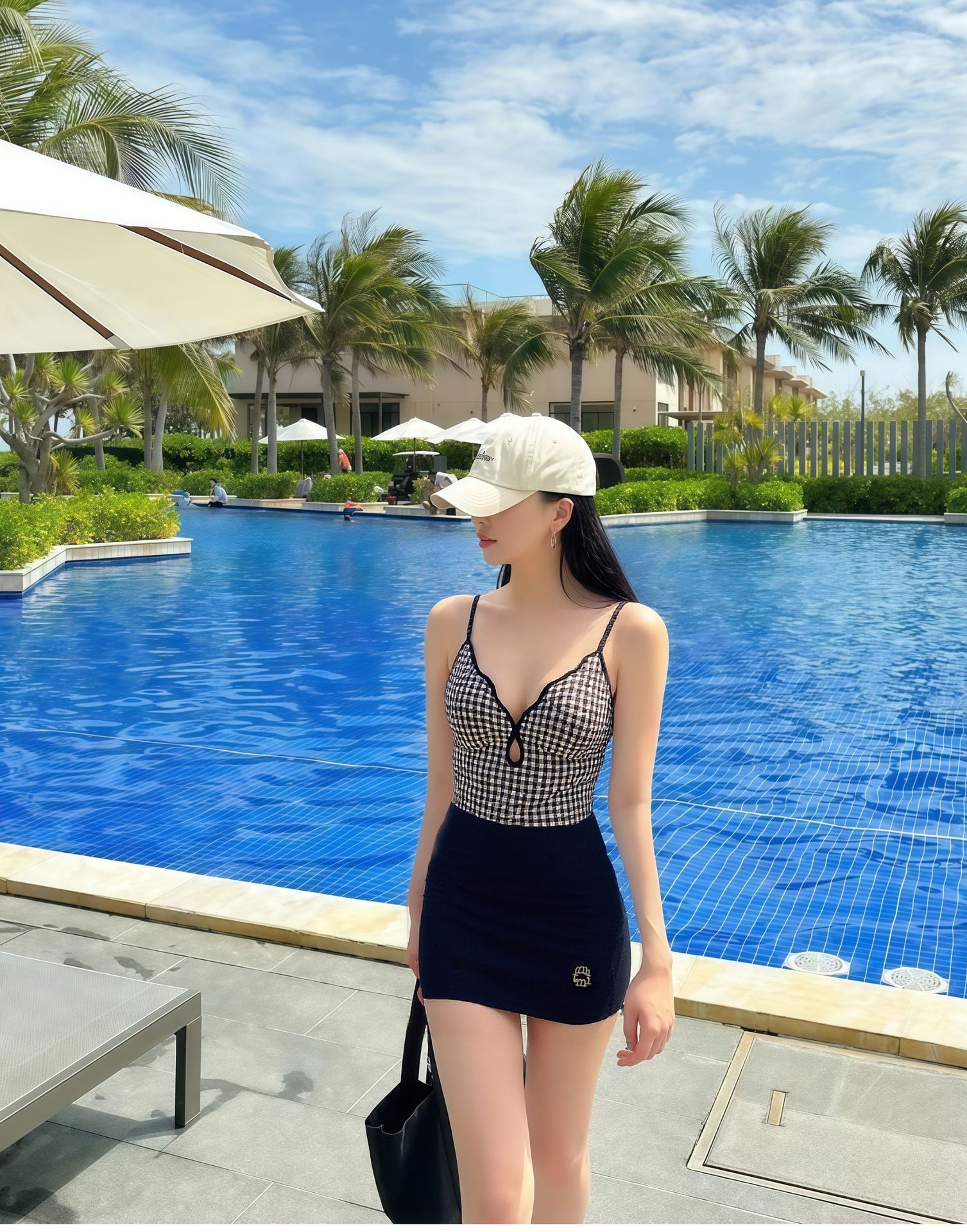 섬 휴가를 위한 새로운 스타일의 여성스러운 도파민 수영복, 고급스럽고 순수한 섹시 스타일의 원피스 스커트 스타일 보수적