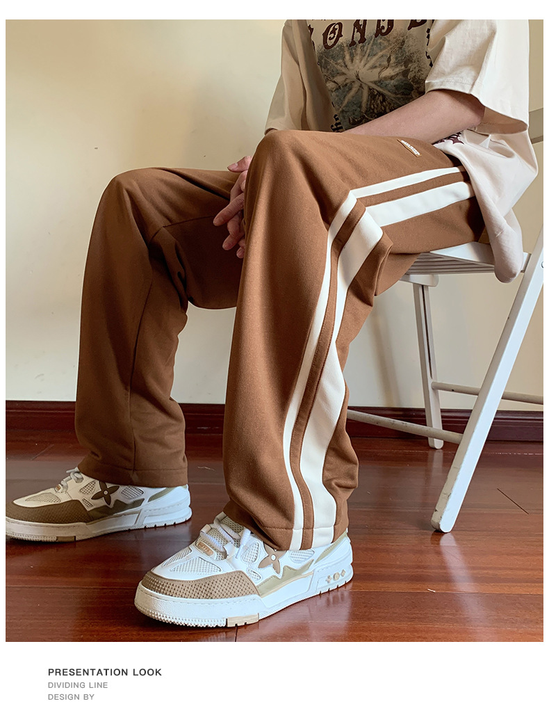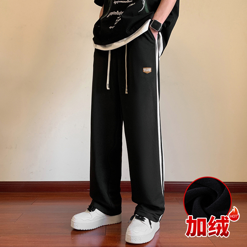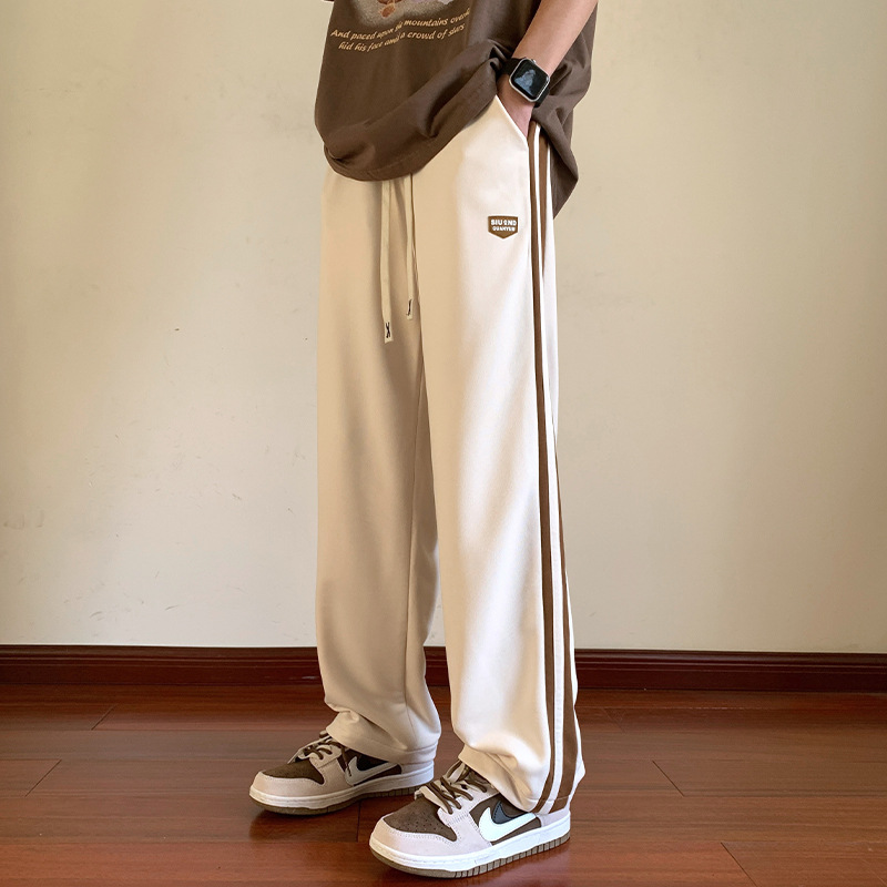 NASA 미국 줄무늬 바지 남자 봄과 가을 패션 브랜드 레트로 기모 스포츠 바지 느슨한 스트레이트 바지 캐주얼스토어 가기