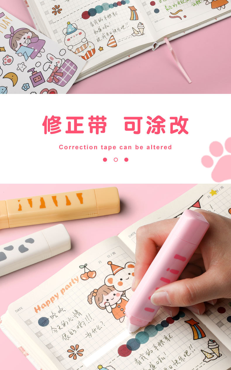 도트 접착제 수정 테이프 핸드북 테이프 투인원 소녀 하트 스티커 고양이 발톱 테이프 양면 테이프 세트 핸드북 접착제