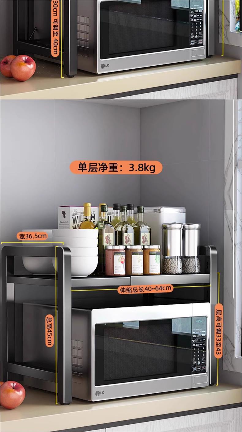 개폐식 주방 보관 랙 전자 레인지 랙 가정용 더블 레이어 조리대 데스크탑 전기 밥솥 보관 브래킷스토어 가기