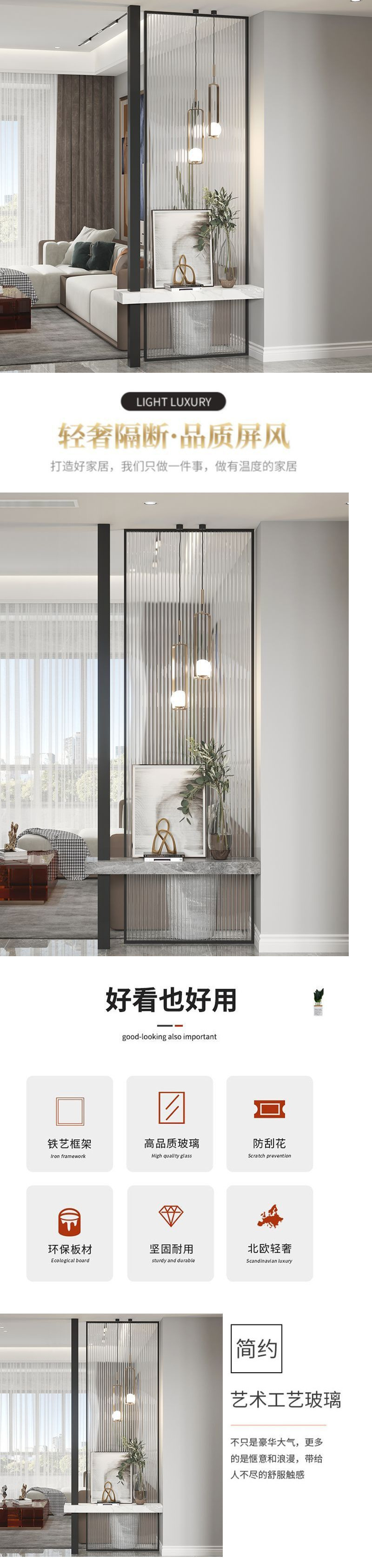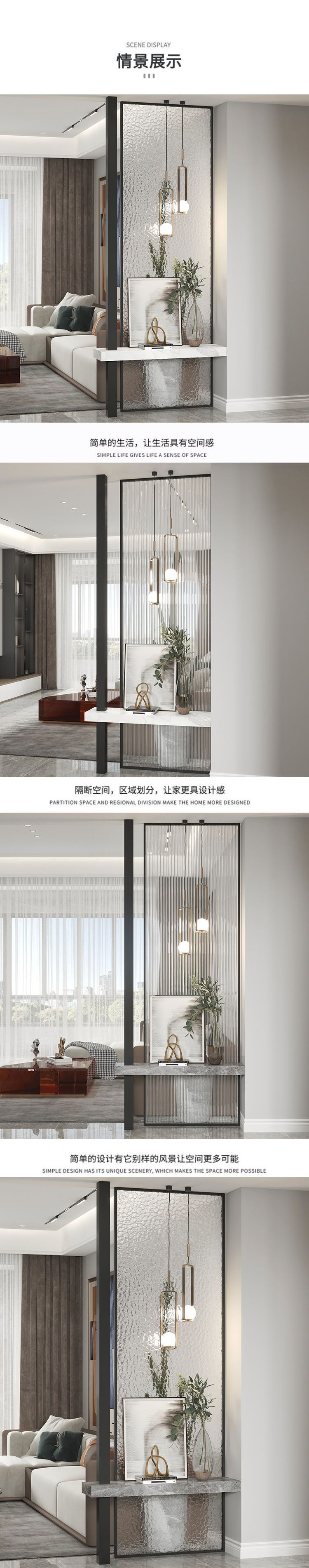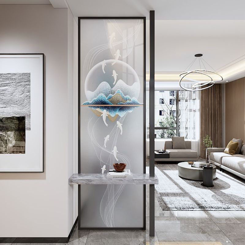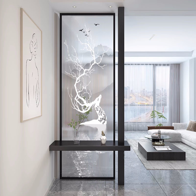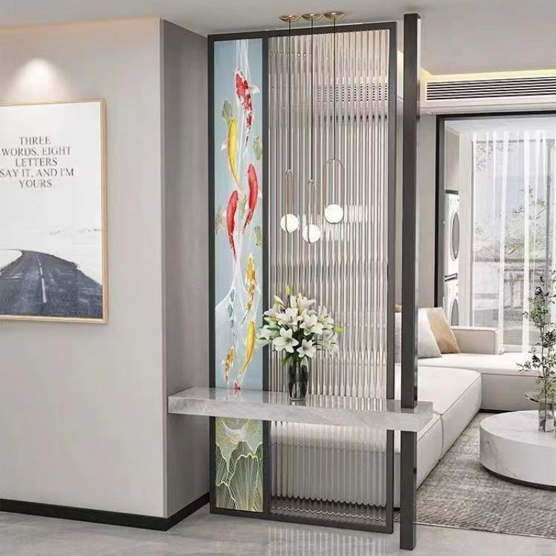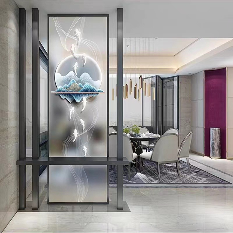 밝은 고급 스크린 거실 파티션 음영 입구 문 현관 예술 창홍 물 패턴 유리 새로운스토어 가기