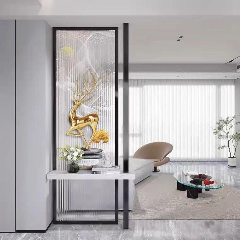 밝은 고급 스크린 거실 파티션 음영 입구 문 현관 예술 창홍 물 패턴 유리 새로운