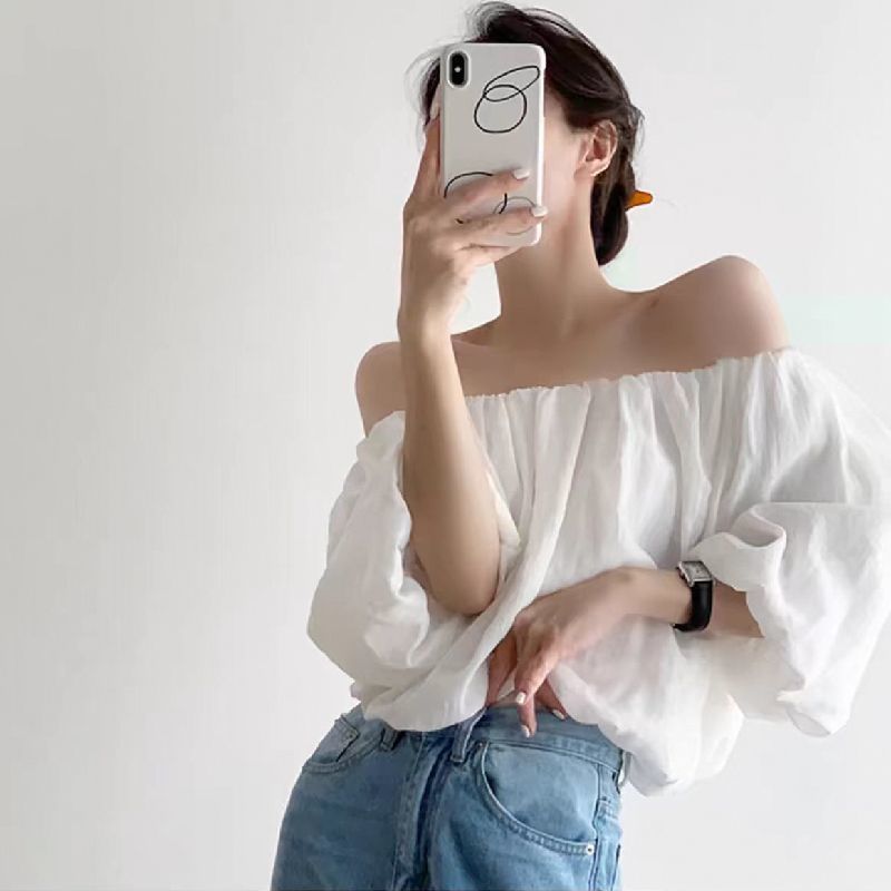 여성용 원 숄더 셔츠 2025 새로운 디자인 틈새 프렌치 쉬폰 하이 엔드 시크 아름다운 셔츠스토어 가기
