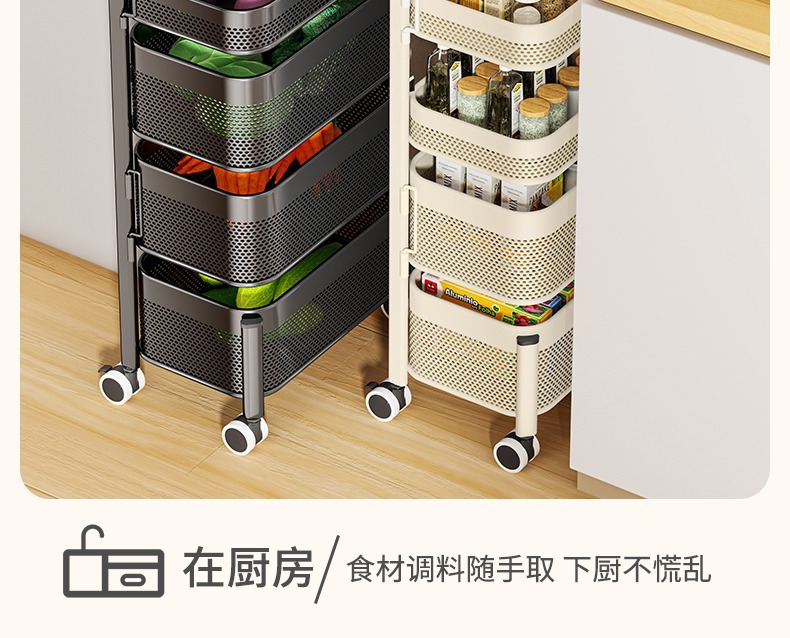 바퀴가 달린 새로운 주방 다기능 슬롯형 수납 선반, 바닥 회전 스낵 트롤리, 야채 바구니 수납 캐비닛