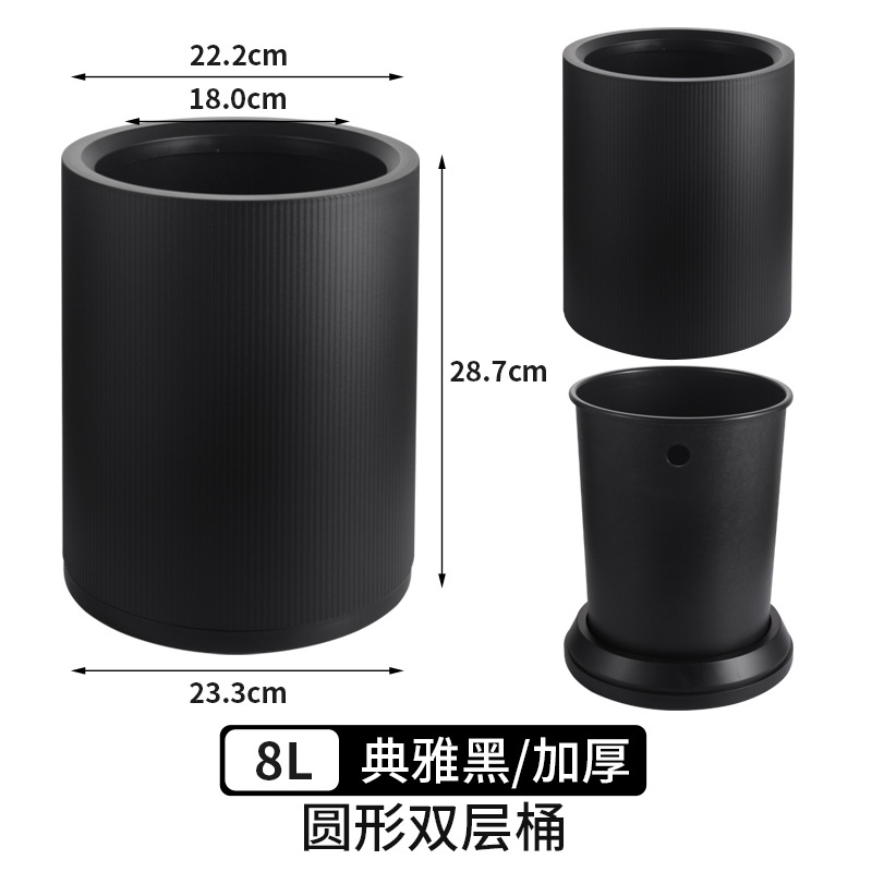 • 8L 원형 이중 배럴(우아한 검정색/두꺼워짐)