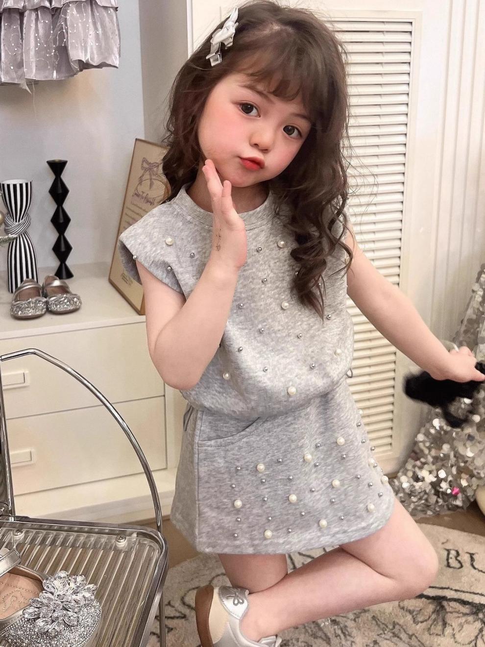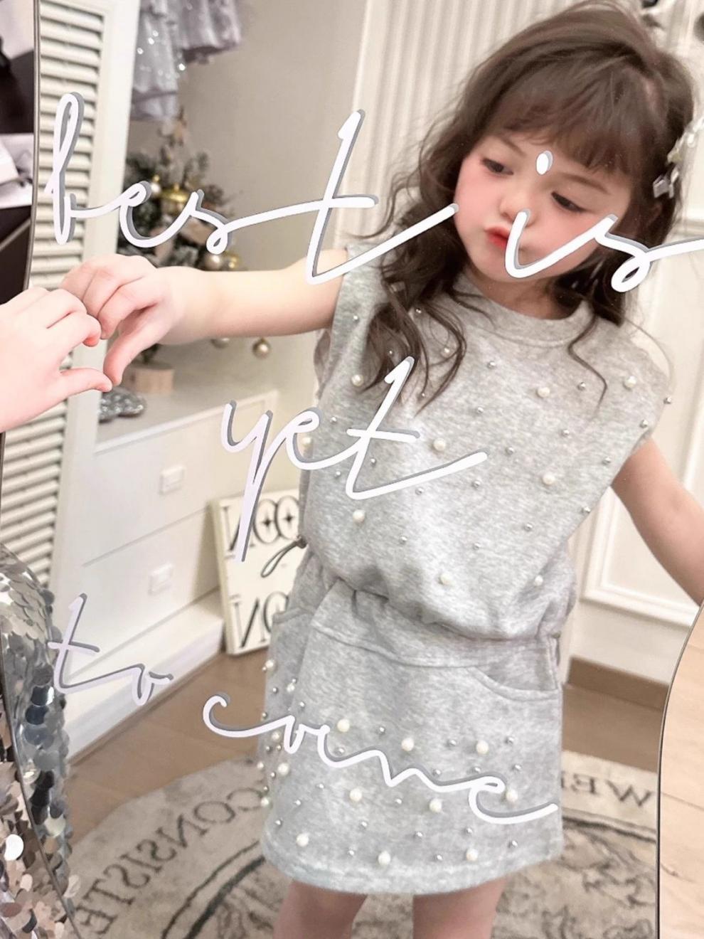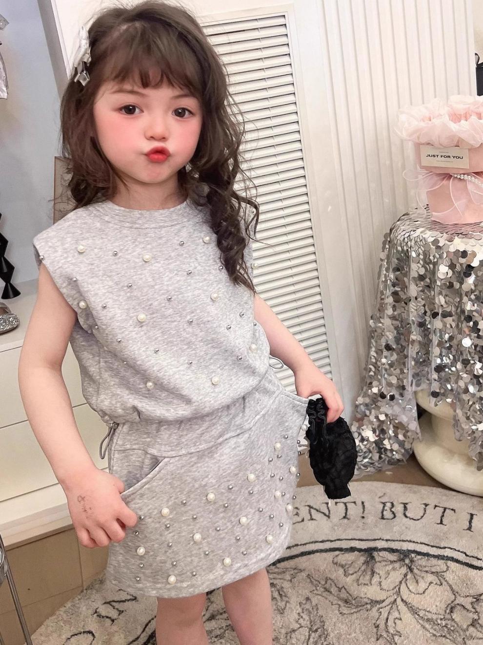 • 그레이 비즈 투피스 세트 [민소매조끼+스커트]