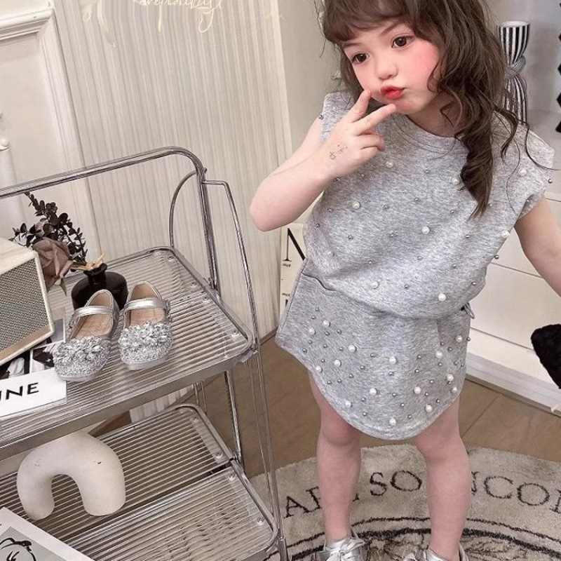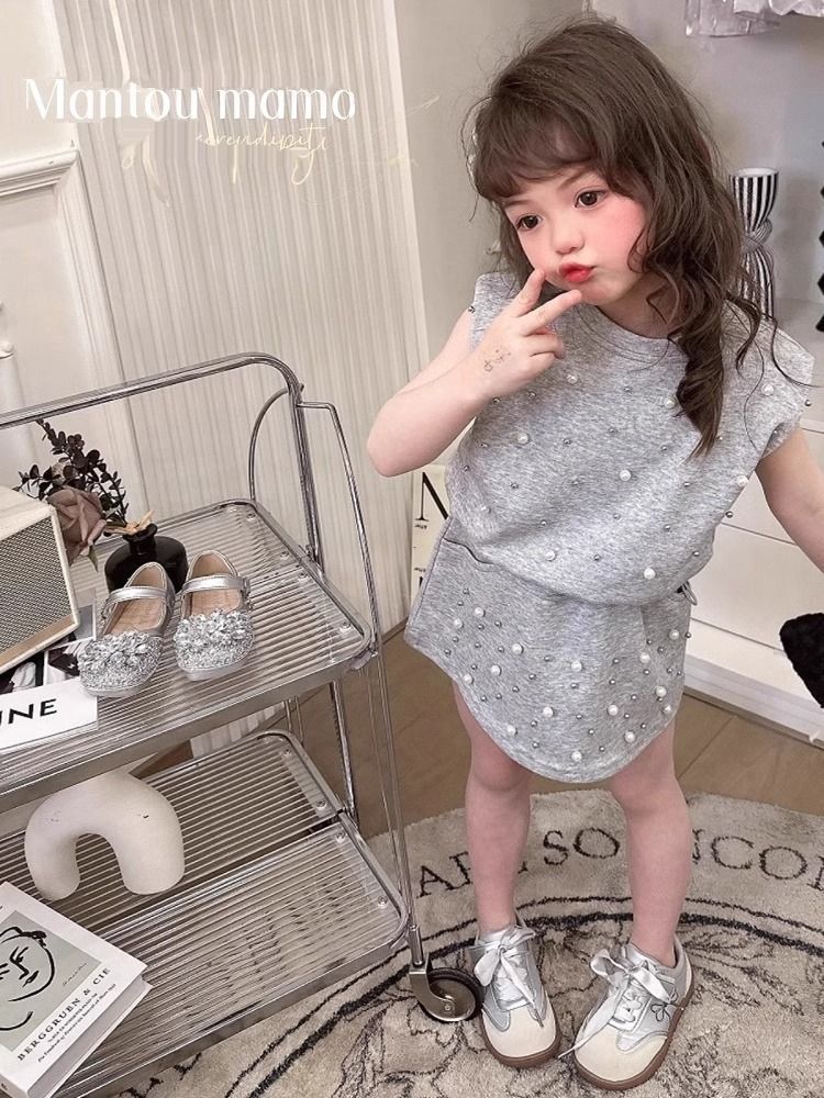 힙합 패션 개성 2025 중공업 구슬 장식 소녀 투피스 민소매 양복 여름 스커트 탑 짧은 스커트스토어 가기