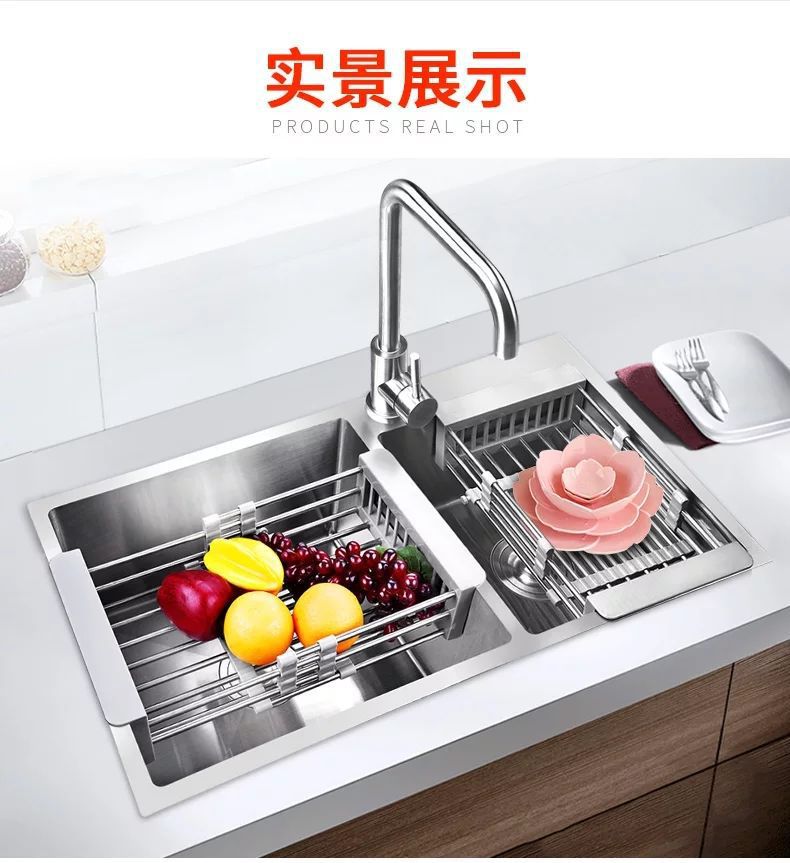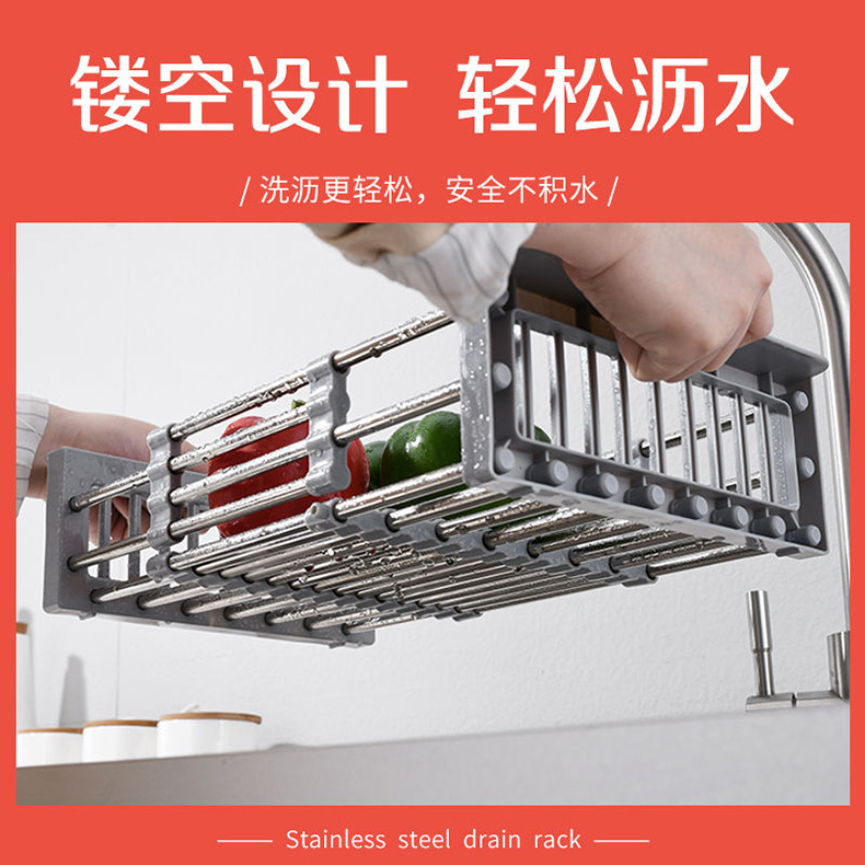 스테인레스 스틸 싱크 배수 바구니 조정 가능한 배수 그릇 랙 다기능 과일 및 야채 접시 세척 바구니 주방 싱크대